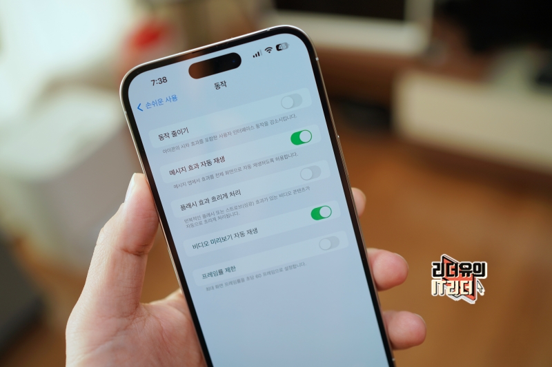 화면을 볼때 깜빡임이나 스트로브 효과가 심한 영상을 볼 때는 눈이 불편할때가 있죠. 그래서 애플은 설정 - 손쉬운 사용 - 동작 메뉴에 플래시 효과 흐리게 처리 메뉴를 추가했습니다. 자동으로 감지해 비디오를 어둡게 처리해주는 똑똑한 기능입니다.