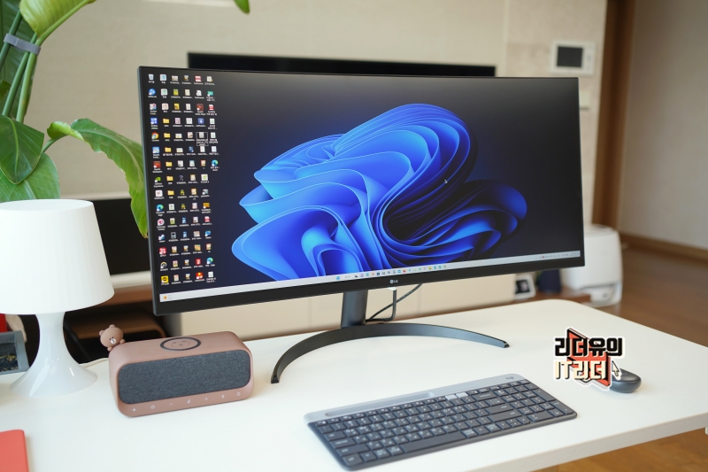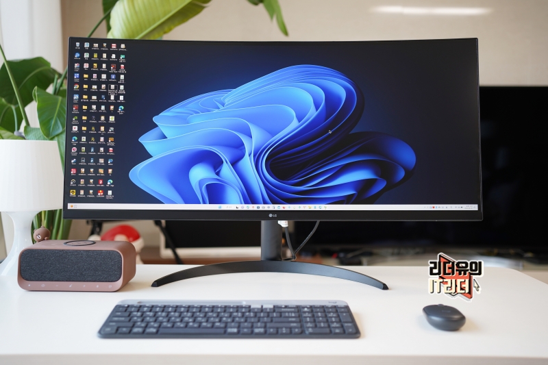 LG 34인치 울트라와이드 모니터 34WQ60C는 살짝 라운딩이 들어간 커브드 모니터입니다. 3800R 곡률이 적용되어 적당한 곡면을 가지고 있는데요. 과하게 라운딩이 들어가지 않아서 편안하게 볼 수 있습니다.