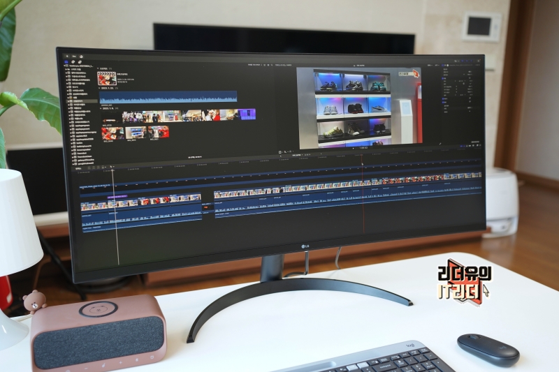 21:9 울트라와이드 모니터는 영상 편집을 할 때도 좋습니다. 타임라인이 길게 나오기 때문에 화면을 자주 움직이지 않아서 좋고 컷편집에도 효율적인 사용성을 느낄 수 있습니다.