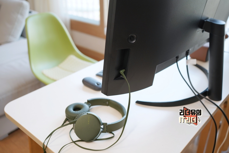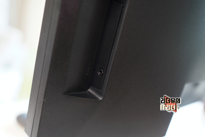 그리고 측면 하단에 이어폰 단자가 있습니다. LG 34인치 울트라와이드 모니터 34WQ60C는 스피커가 기본 장착되어 있지 않아 H/P 단자로 외장 스피커 연결이나 헤드폰, 이어폰을 연결해서 사용할 수 있습니다.