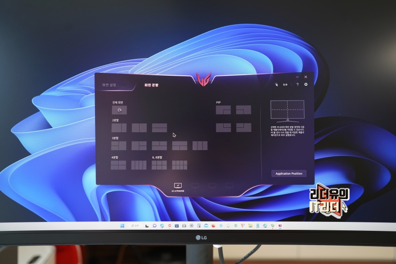 그래서 LG전자는 울트라와이드 모니터 화면을 더욱 쉽게 활용할 수 있게 OnScreen Control 프로그램을 제공하고 있습니다. 화면분할을 쉽게 할 수 있게 해주는 프로그램인데요. 2분할, 3분할, 4분할 6분할 등 원하는 화면 분할을 빠르게 할 수 있고 PIP 기능도 지원해 효율적인 화면 구성이 가능합니다.