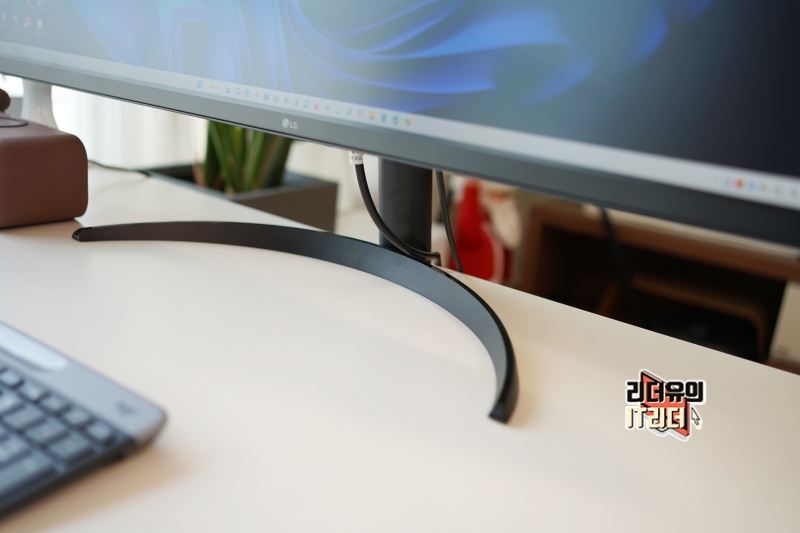 그리고 LG 34인치 울트라와이드 모니터 34WQ60C를 지지하는 스탠드 다리는 슬림하고 라운딩이 들어간 디자인이라 공간 활용성도 뛰어나고 감각적인 디자인 포인트가 되어 줍니다.
