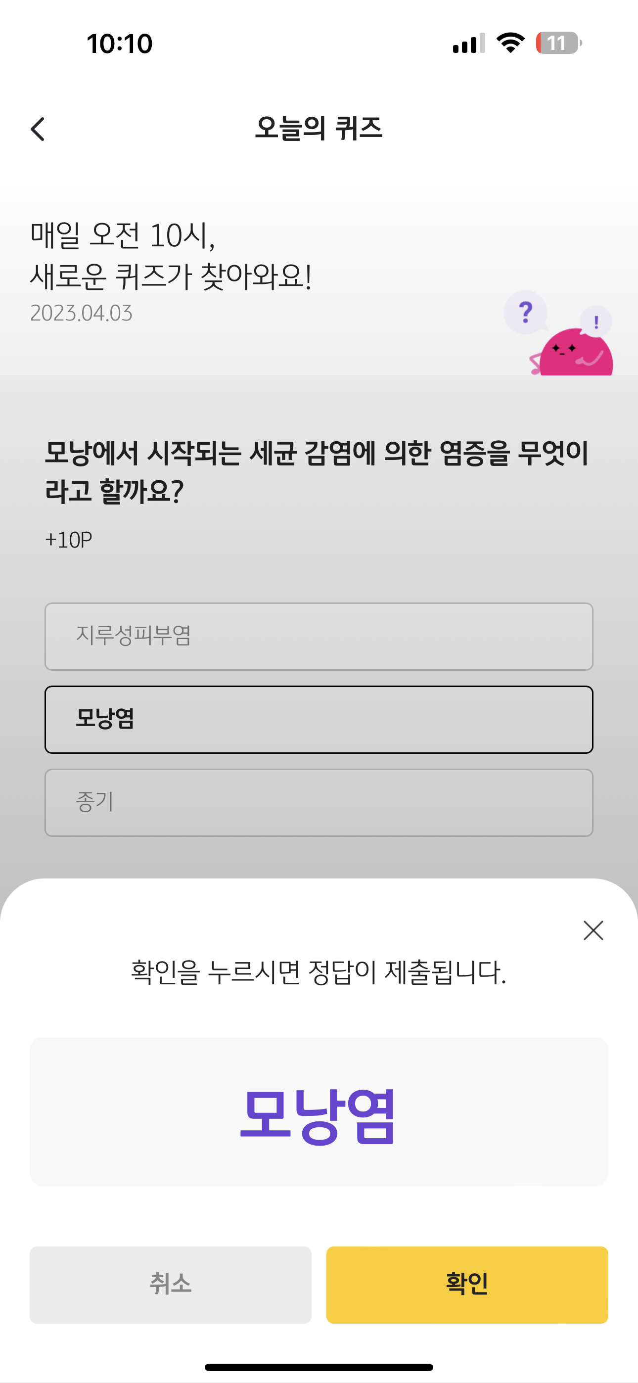 KB Pay 오늘의 퀴즈 정답은 모낭염 입니다