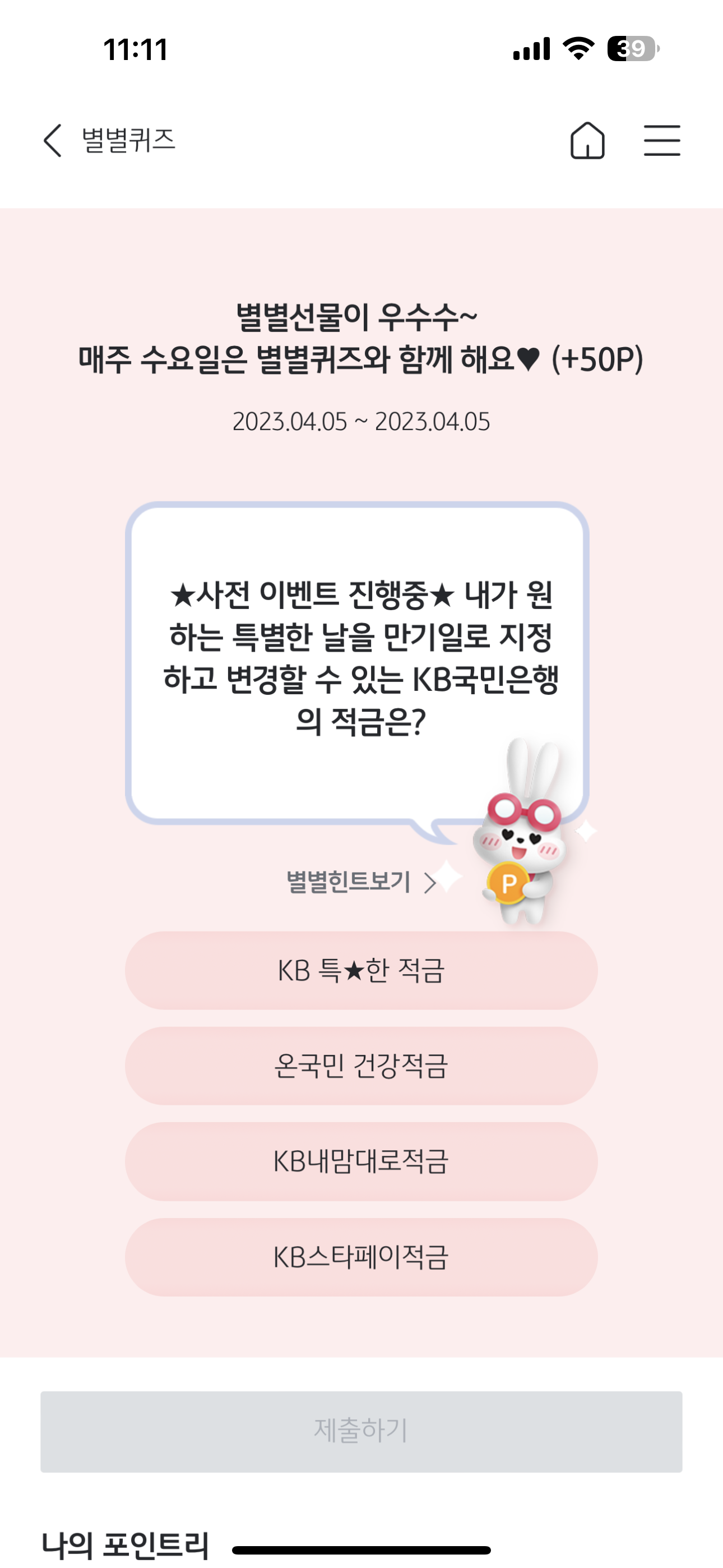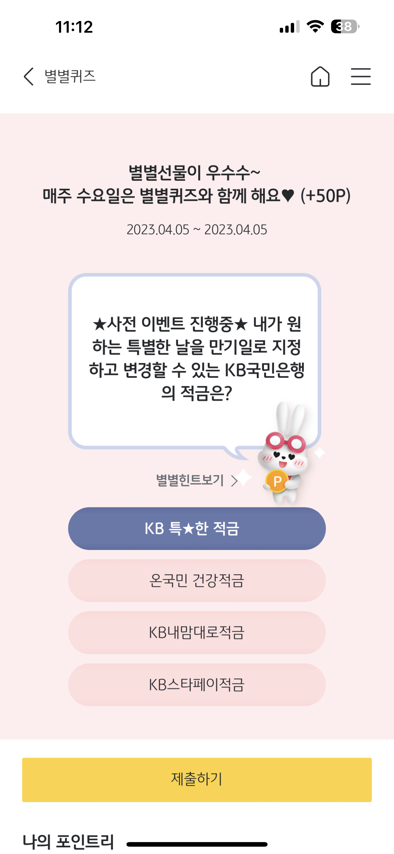 KB스타뱅킹 별별퀴즈 4월 5일 문제입니다.