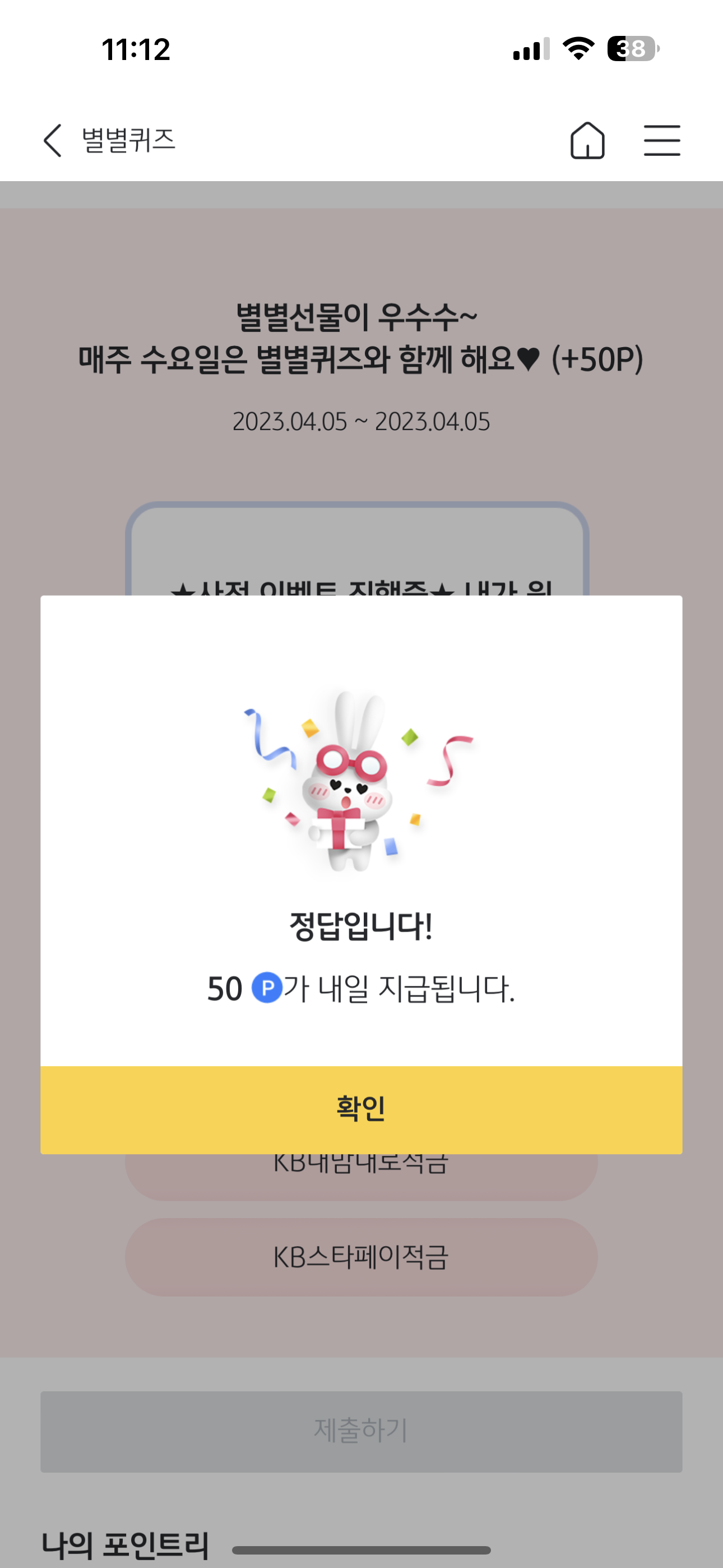 KB스타뱅킹 별별퀴즈 4월 5일 문제입니다.