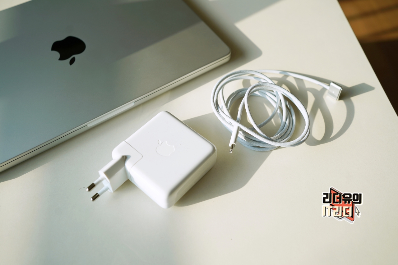 애플 M2 Pro 맥북프로14 구성품은 USB-C 전원 어댑터와 USB-C 맥세이프3 케이블이 제공됩니다.