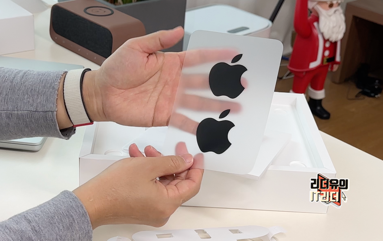 애플 M2 Pro 맥북프로14 구성품을 보면 애플 스티커 2장이 제공됩니다. 맥북프로14 실버에 있는 블랙 컬러의 사과 로고 스티커입니다.