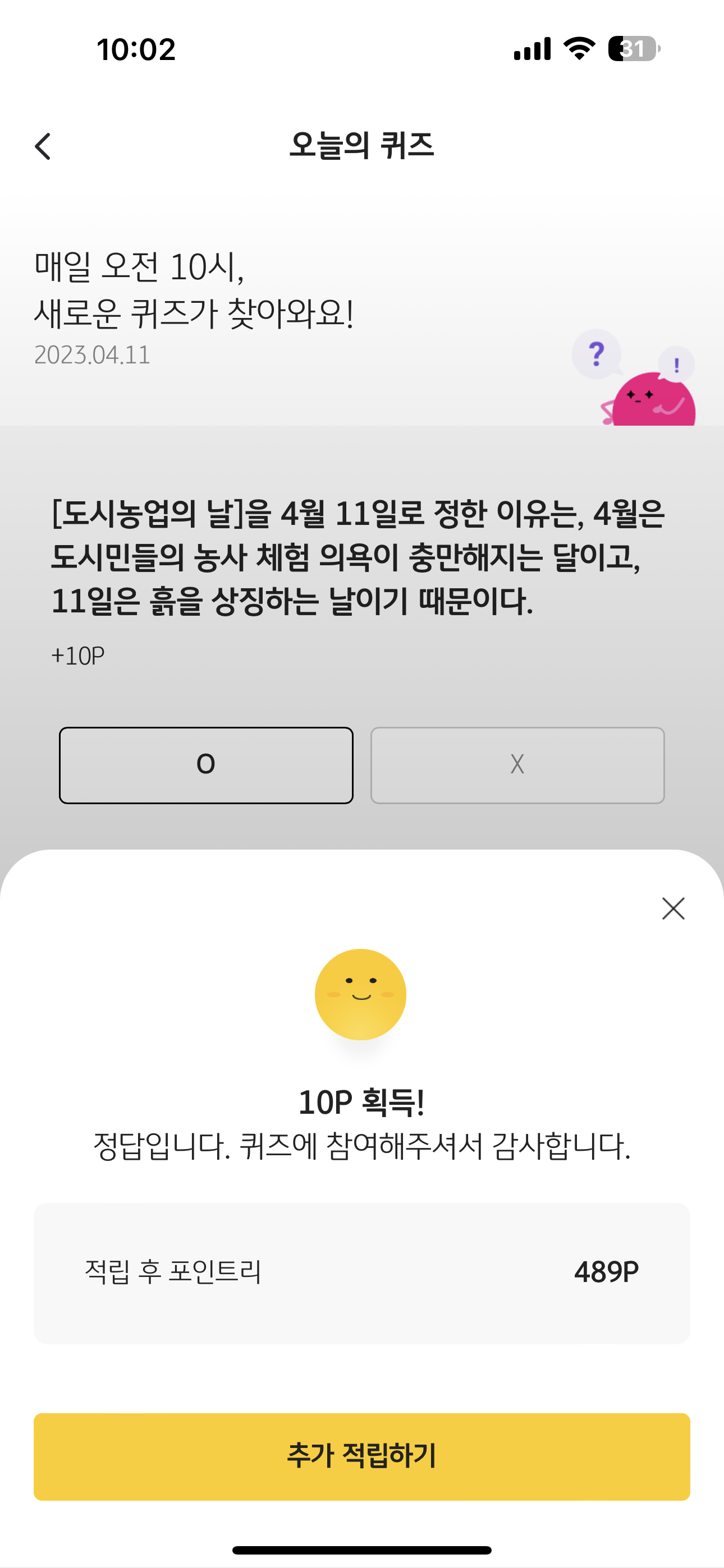 오늘도 포인트리 10포인트를 획득했습니다. 포인트리는 현금 전환이 가능하니 꼭 받으시고요. 여러분의 소소한 재테크를 응원합니다