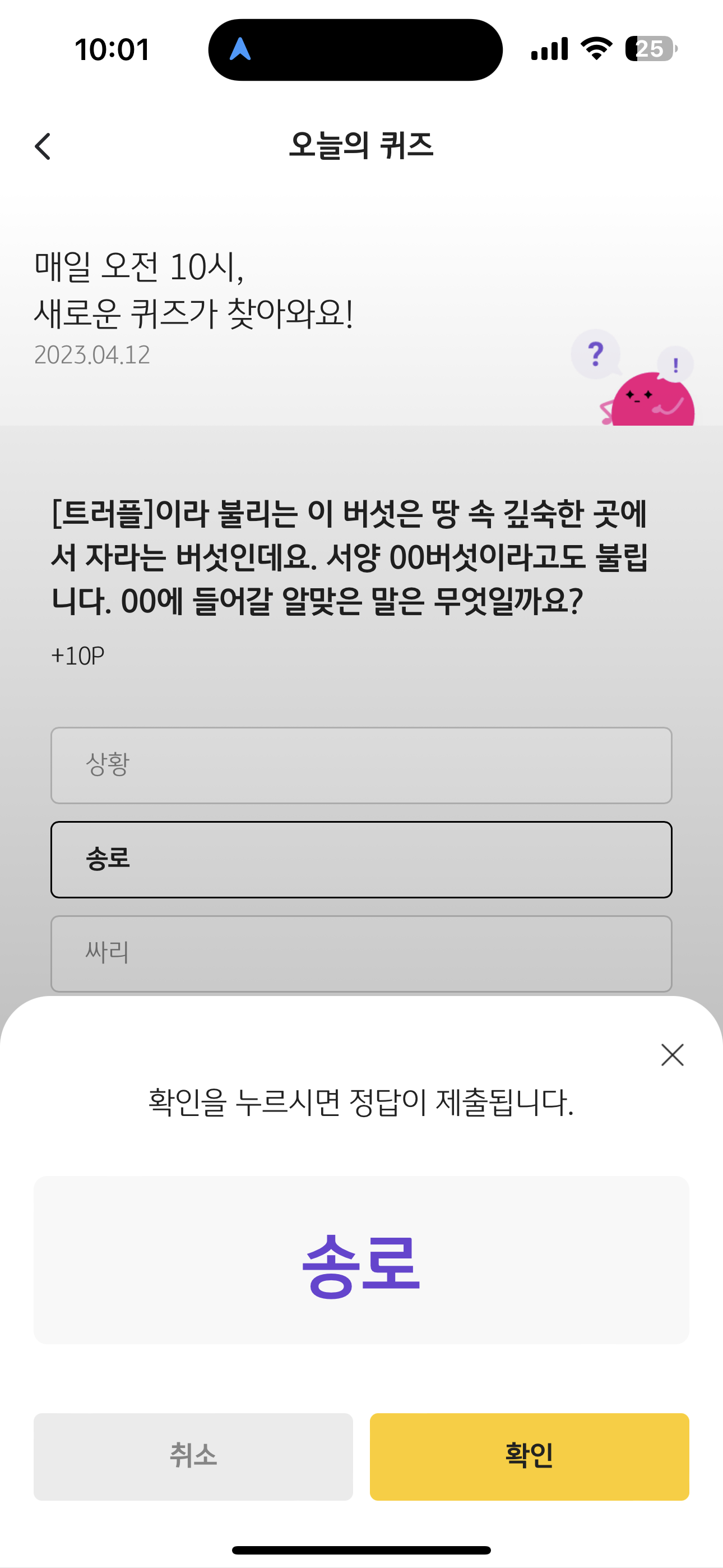 KB Pay 오늘의 퀴즈 정답은 송로 입니다
