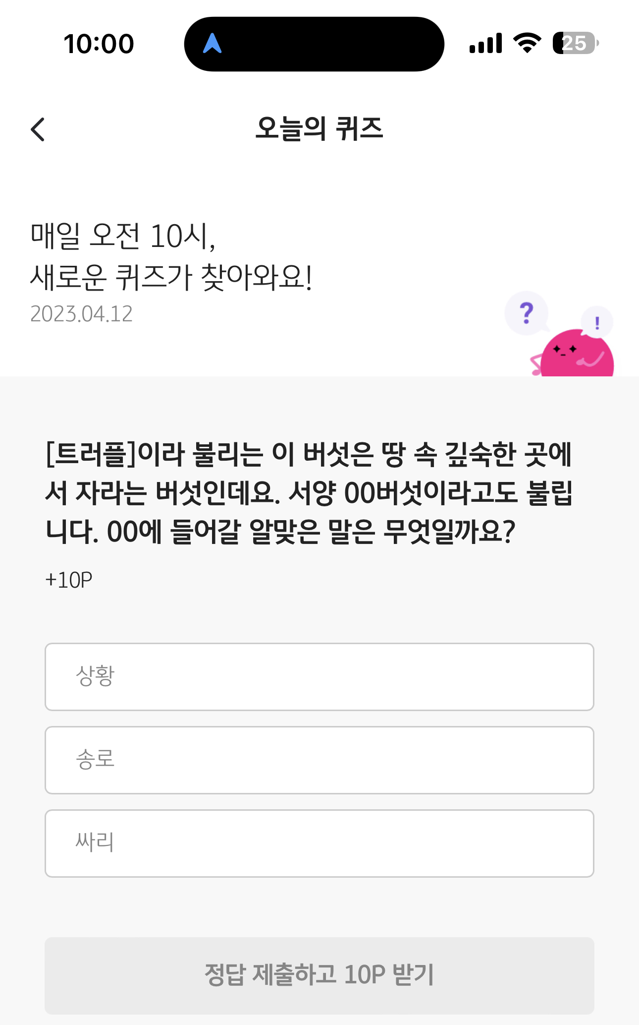 KB Pay 오늘의 퀴즈 정답은 송로 입니다