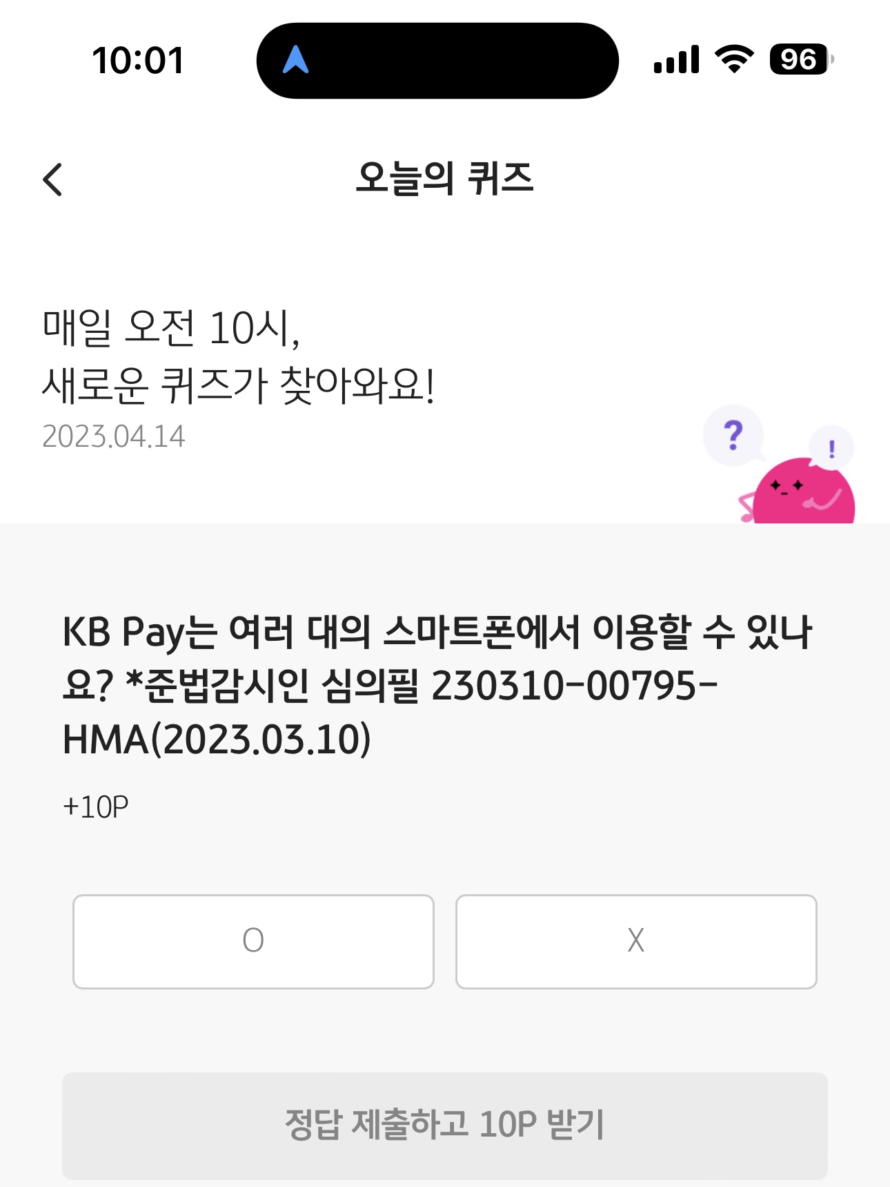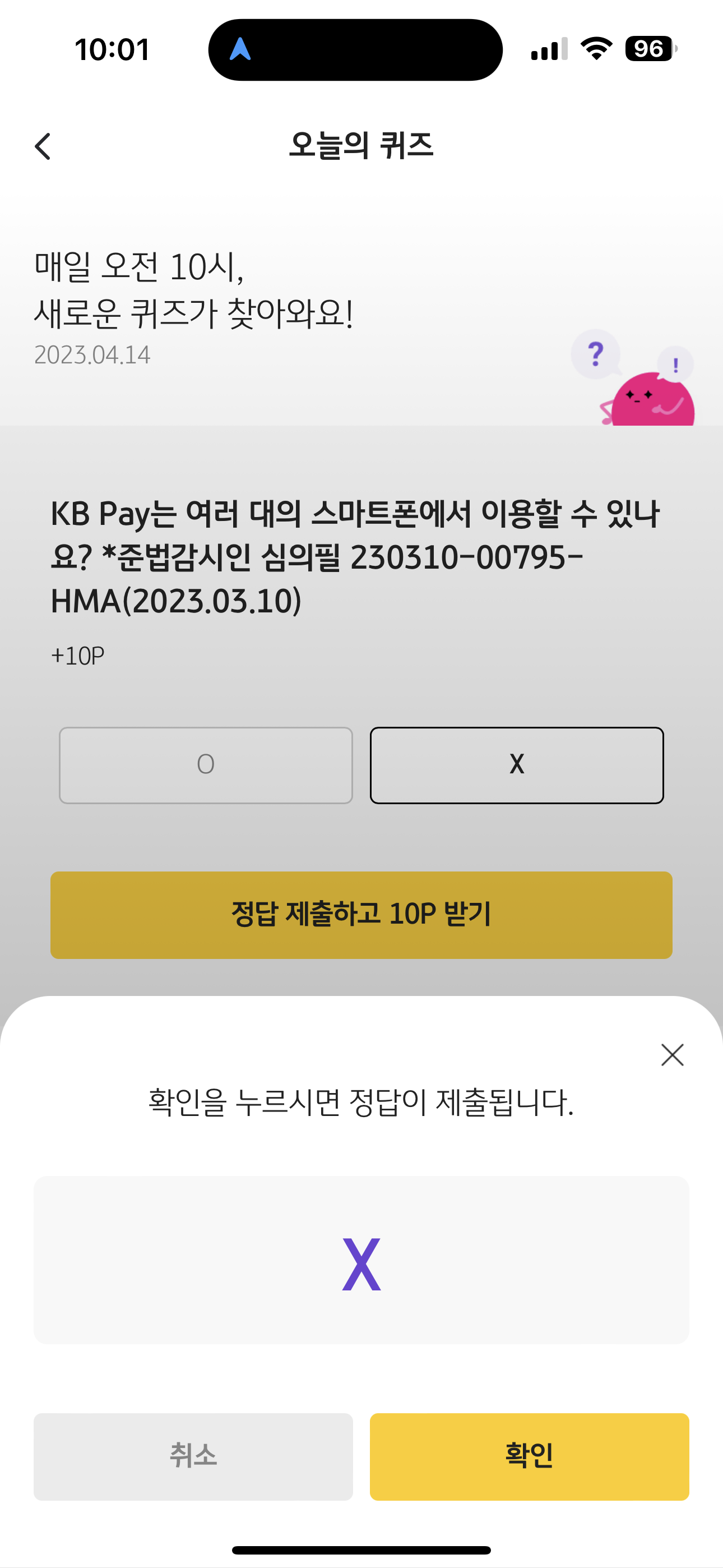 KB pay 오늘의 퀴즈 정답은 X 입니다