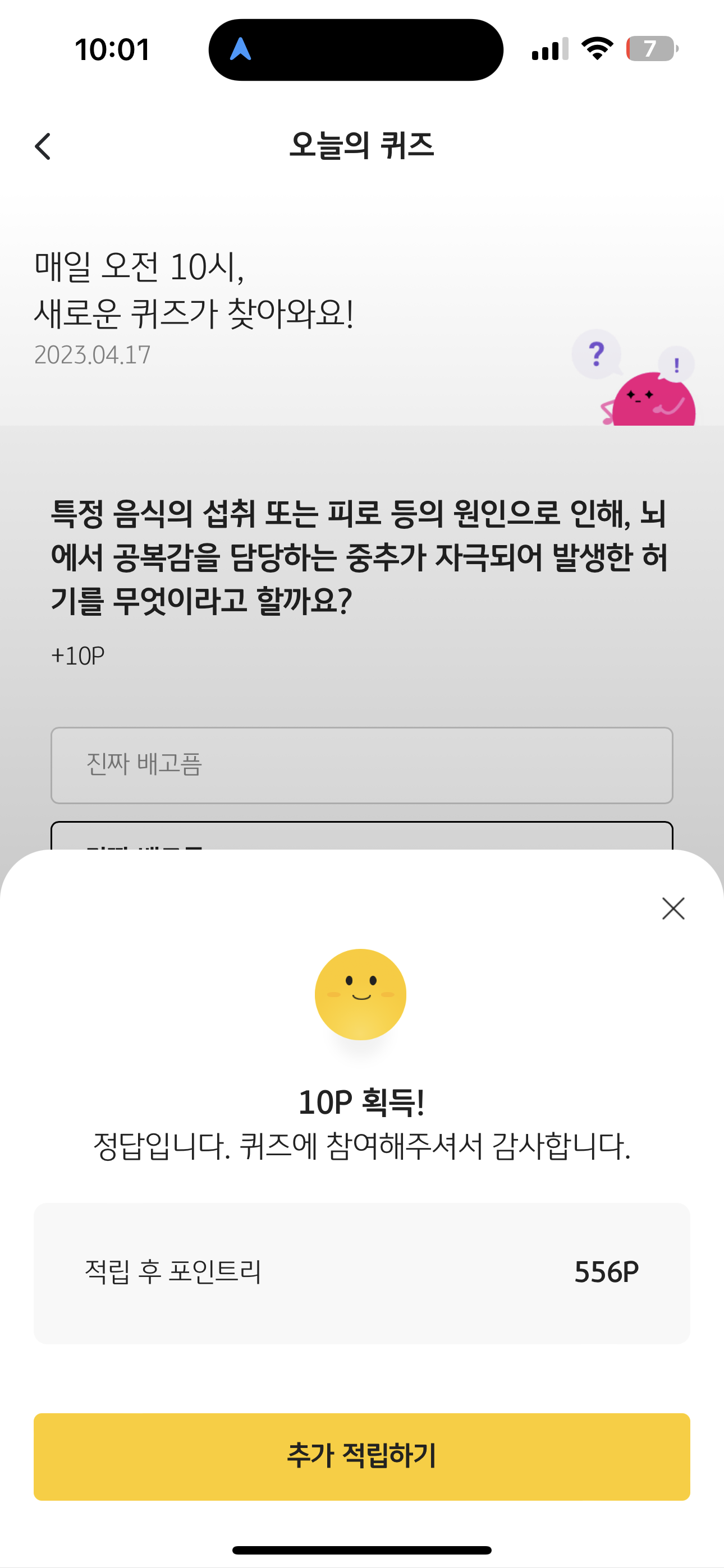 KB Pay 오늘의 퀴즈 정답은 가짜 배고픔 입니다