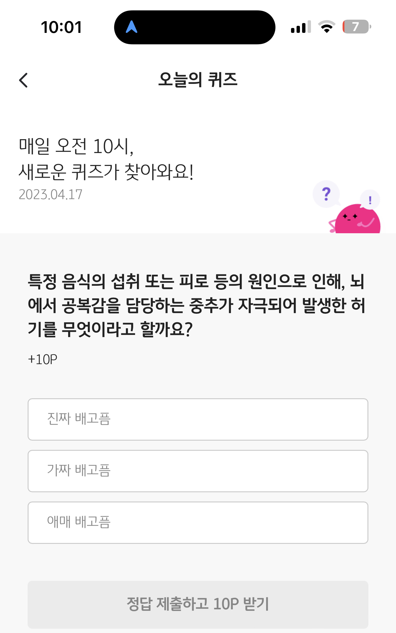 KB Pay 오늘의 퀴즈 정답은 가짜 배고픔 입니다