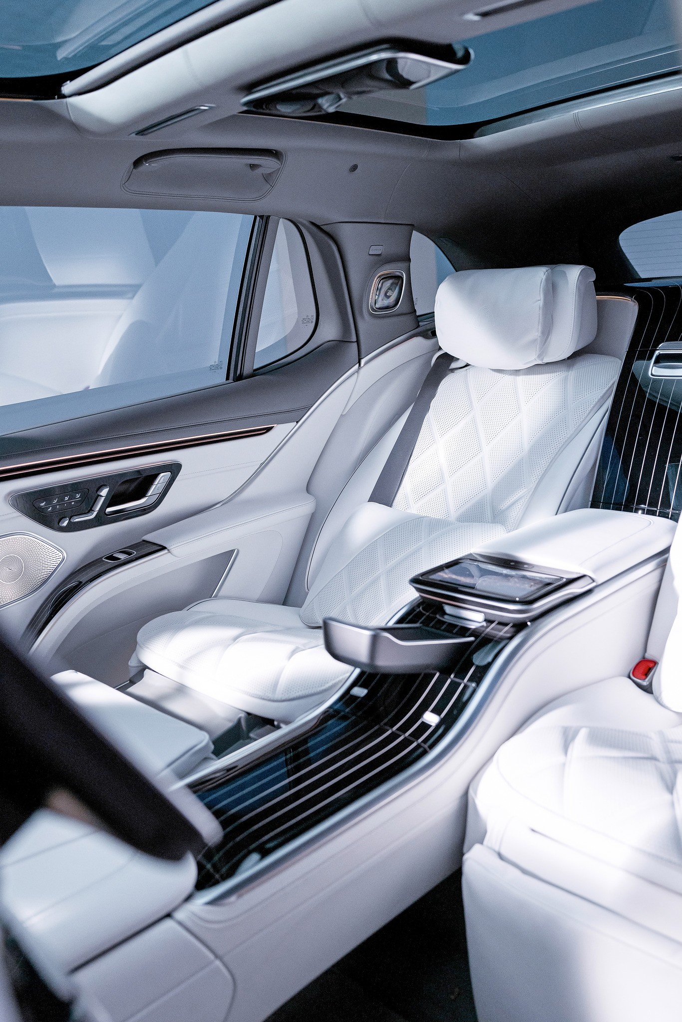 마이바흐 EQS SUV 전기차 뒷좌석 공간도 앞자리와 비슷한 디자인으로 되어 있고 다양한 편의 기능을 탑재해 안락함을 강조하고 있습니다.