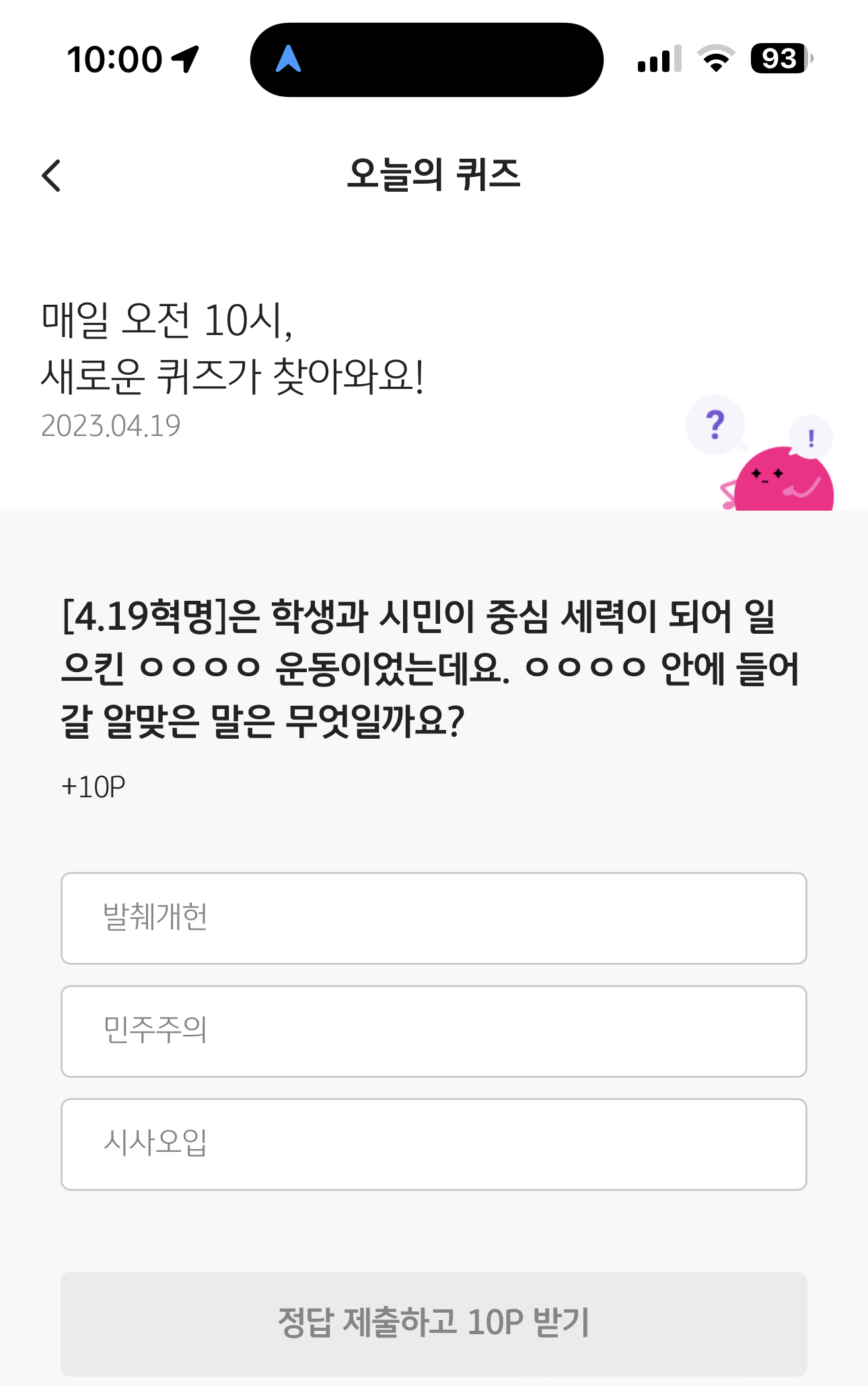 KB pay 오늘의 퀴즈 정답은 민주주의 입니다