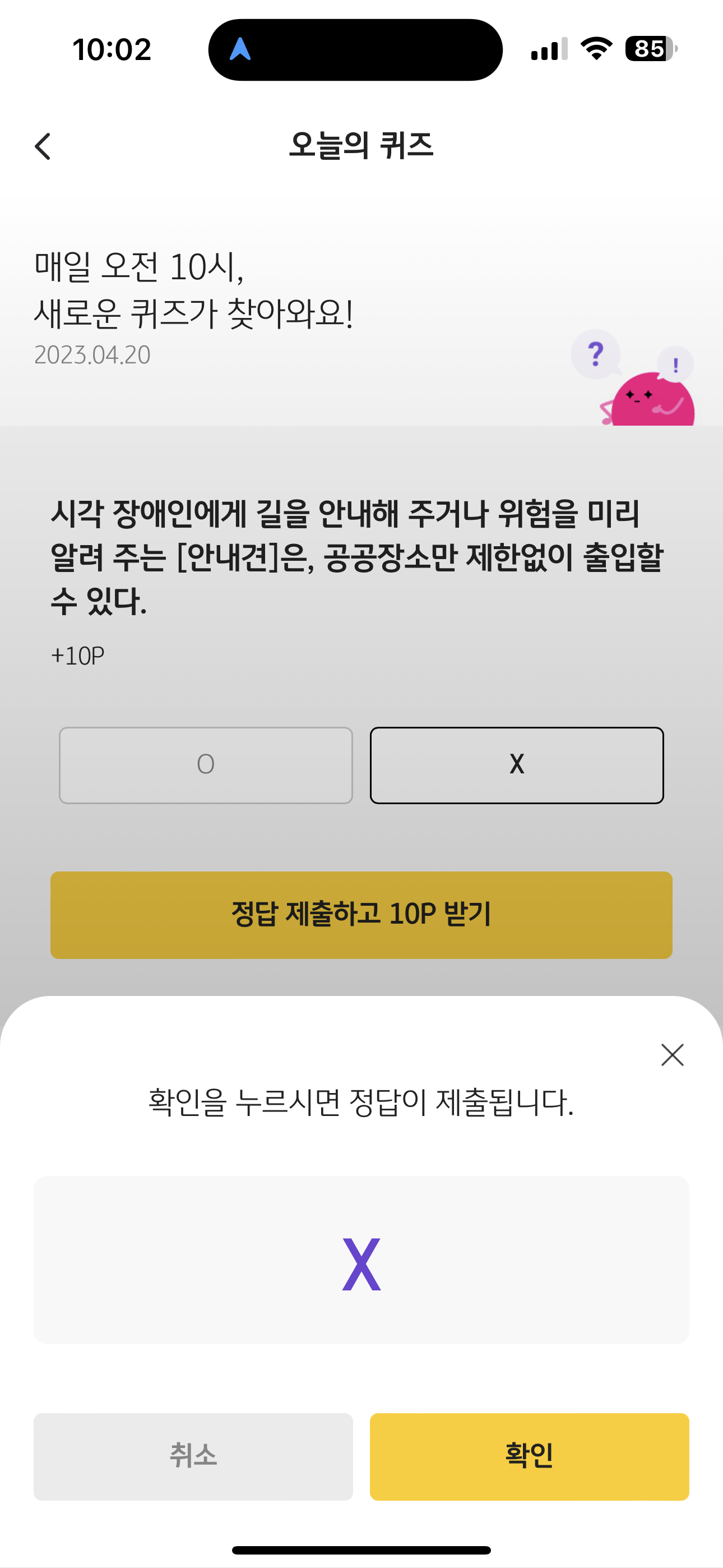 kB pay 오늘의 퀴즈 정답은 X 입니다