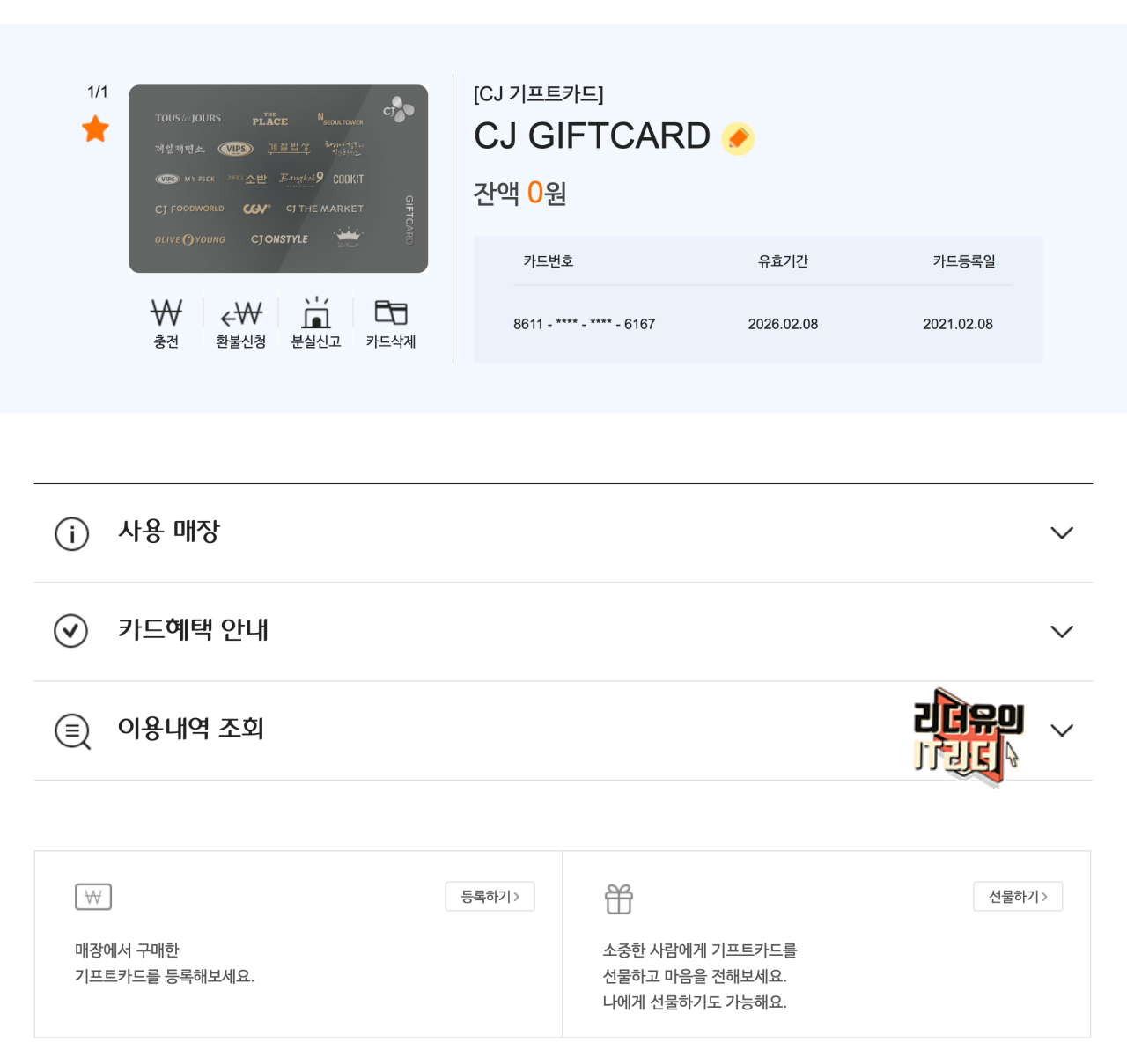 CJ 기프트카드 등록하기
