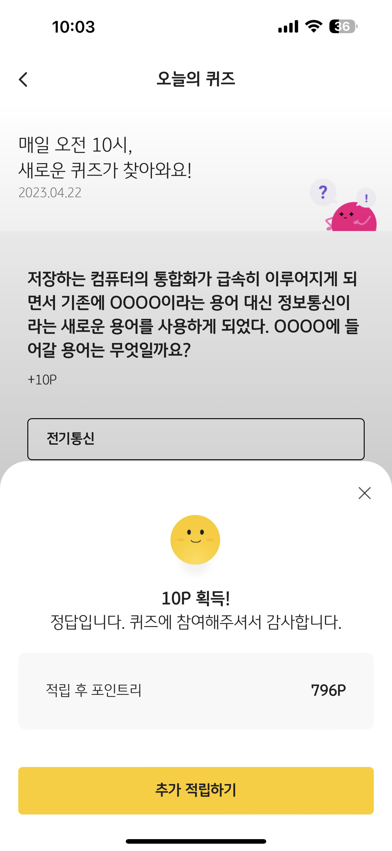 오늘도 포인트리 10포인트를 획득했습니다. 포인트리는 현금 전환이 가능하니 꼭 받으시고요. 여러분의 재테크를 응원합니다