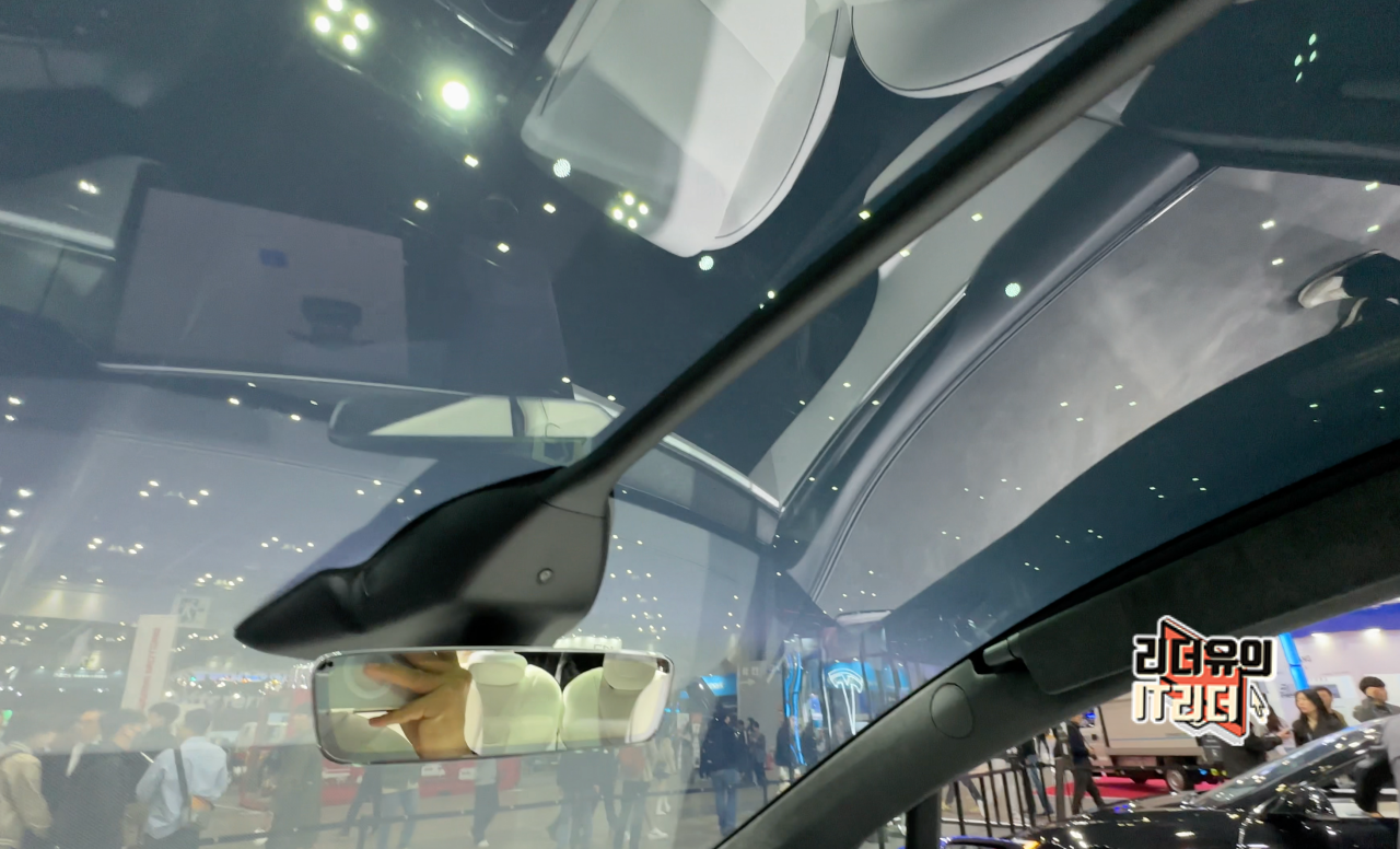 테슬라 모델X 팔콘윙 도어를 앉아서 위를 본 모습입니다. 비가 내릴때도 아주 편하게 내릴 수 있을 것 같습니다.