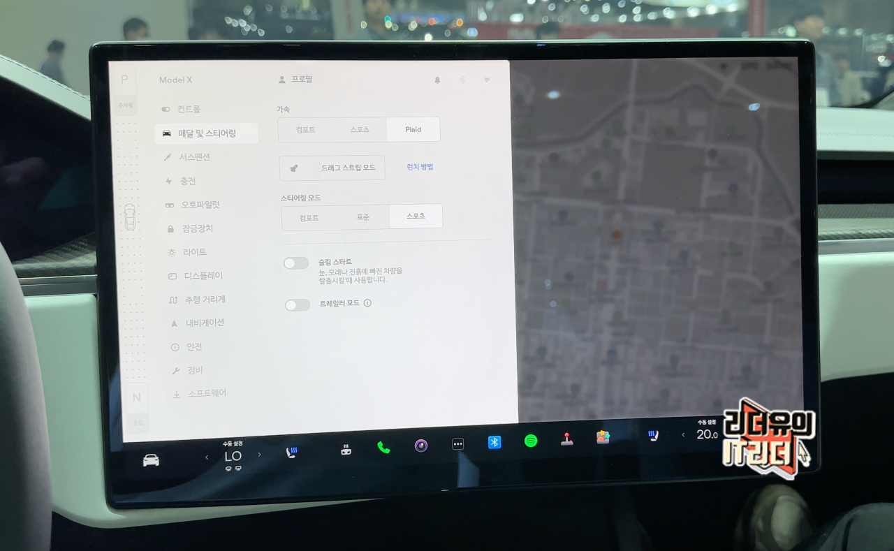 테슬라 모델X 요크 스티어링 휠이 좋은점은 클러스터를 시원시원하게 볼 수 있다는 것입니다.