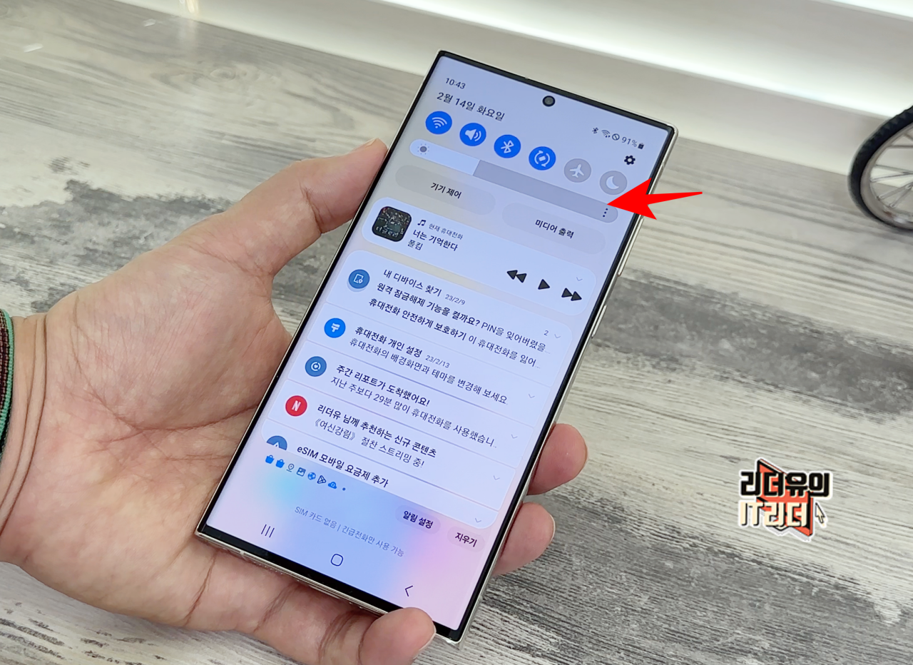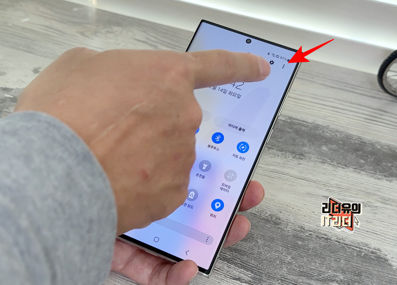 그 때는 갤럭시S23 울트라 제어센터 화면 위에 보면 ... 메뉴가 있습니다.