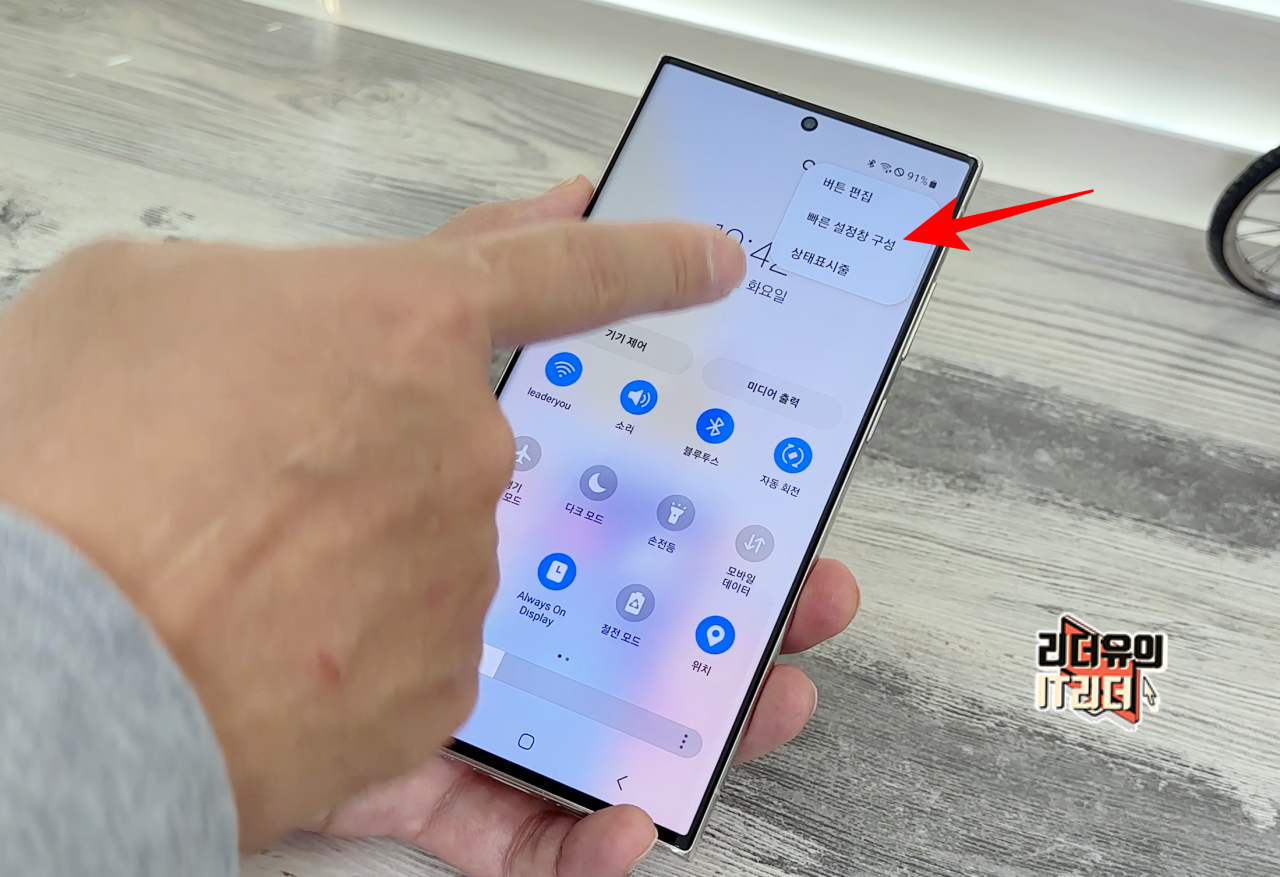 이걸 누르면 빠른 설정창 구성이라는 메뉴가 있습니다.