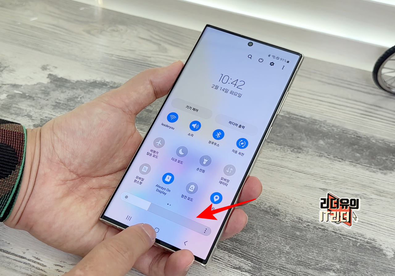 갤럭시S23 울트라 빠른 설정창 밝기 제어 위치 변경
