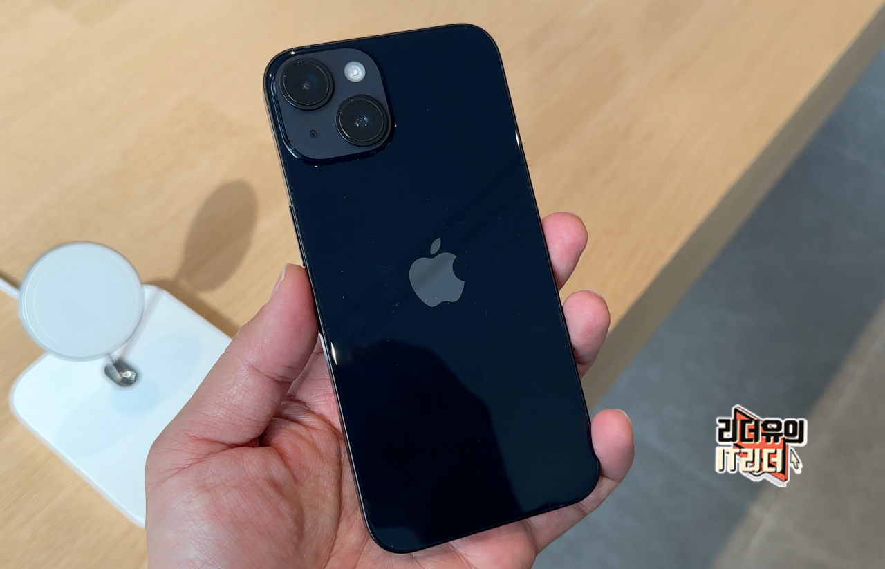 아이폰14 미드나이트 윗면은 아무것도 없이 깔끔한 디자인을 볼 수 있습니다.
