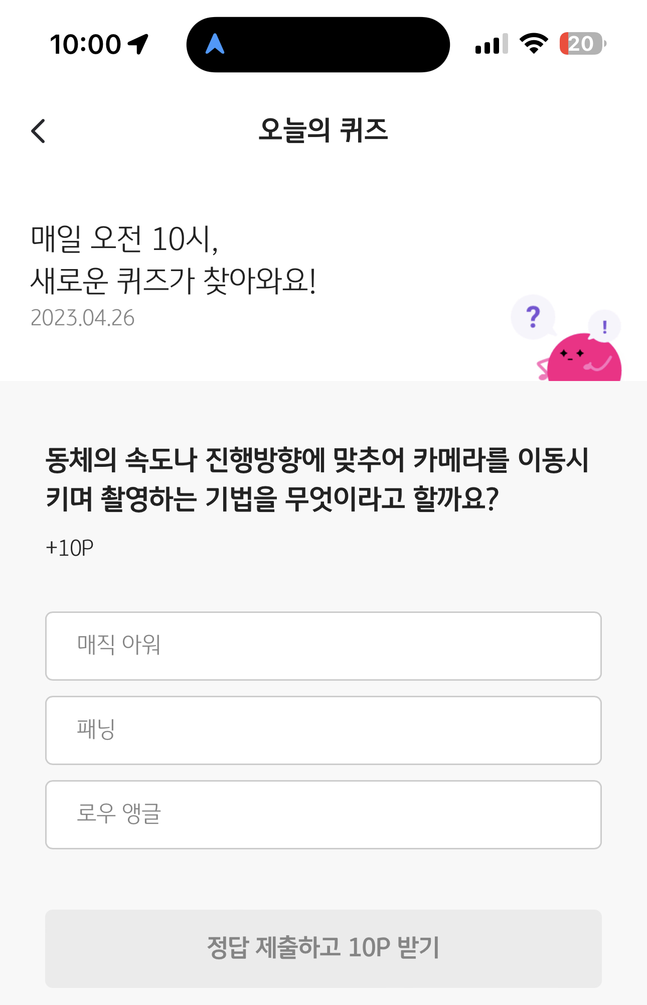 KB Pay 오늘의 퀴즈 정답은 패닝 입니다
