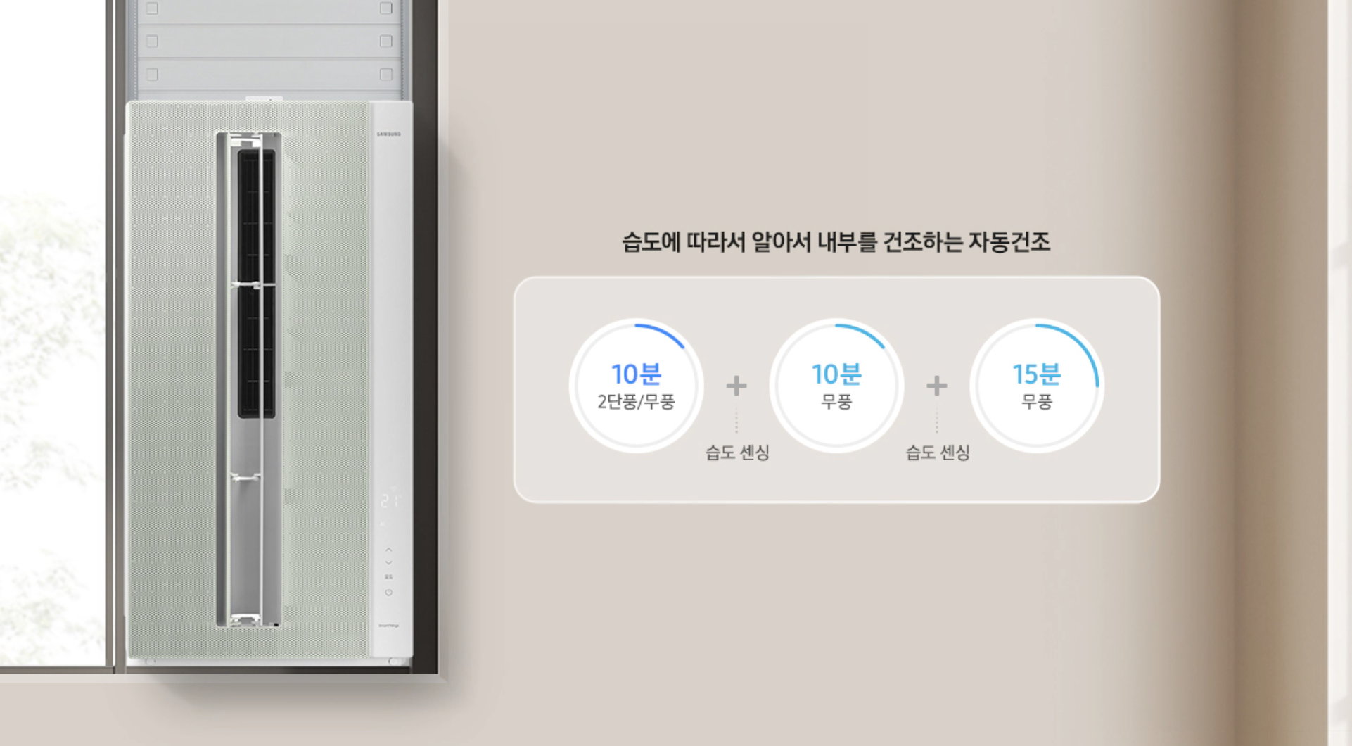 에어컨 종료 후 내부 습기를 건조하는 자동 건조 기능이 있고