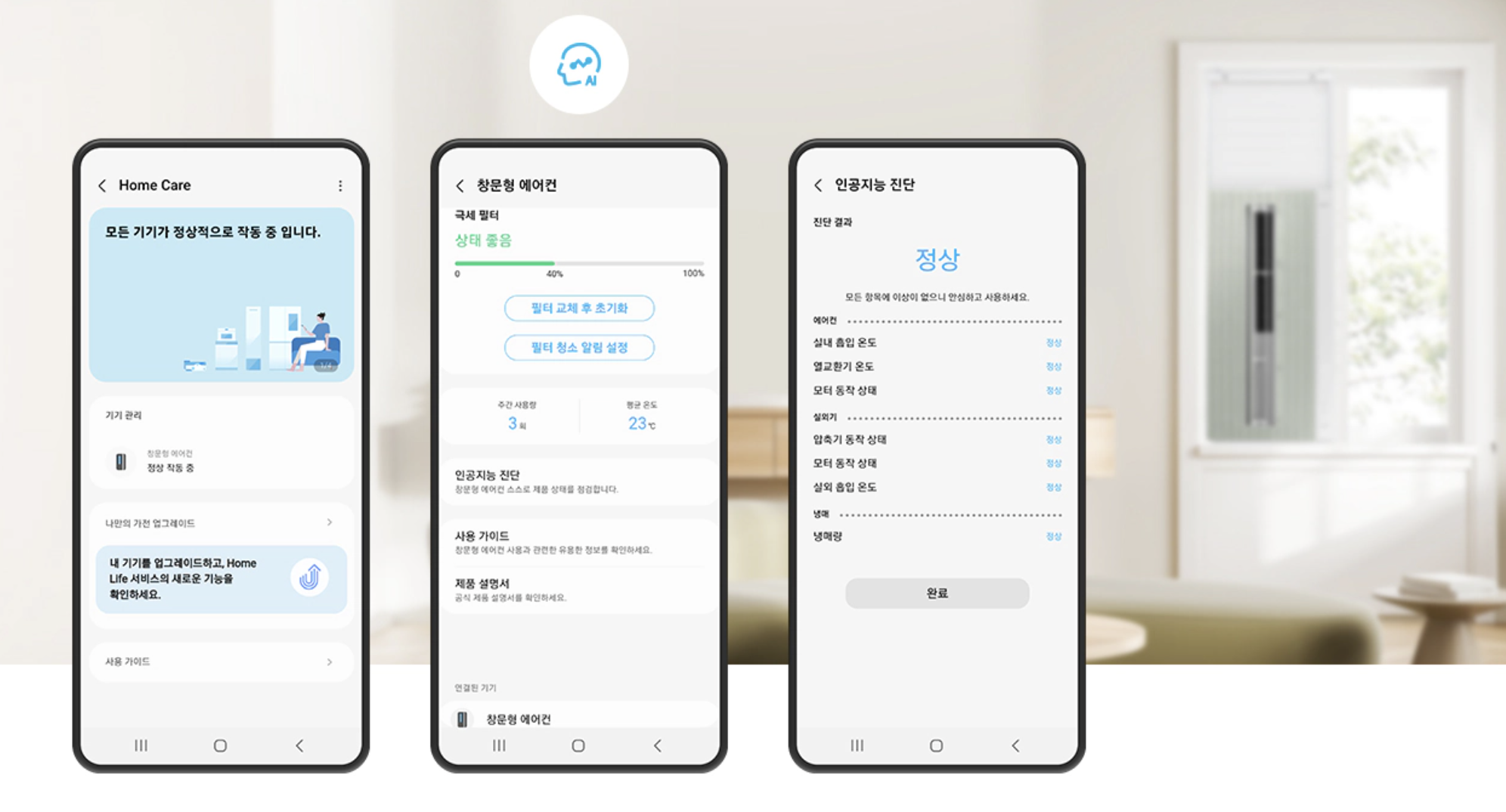 스스로 냉매량 센서 등 상태를 점검하는 AI 진단 기능이 있습니다.