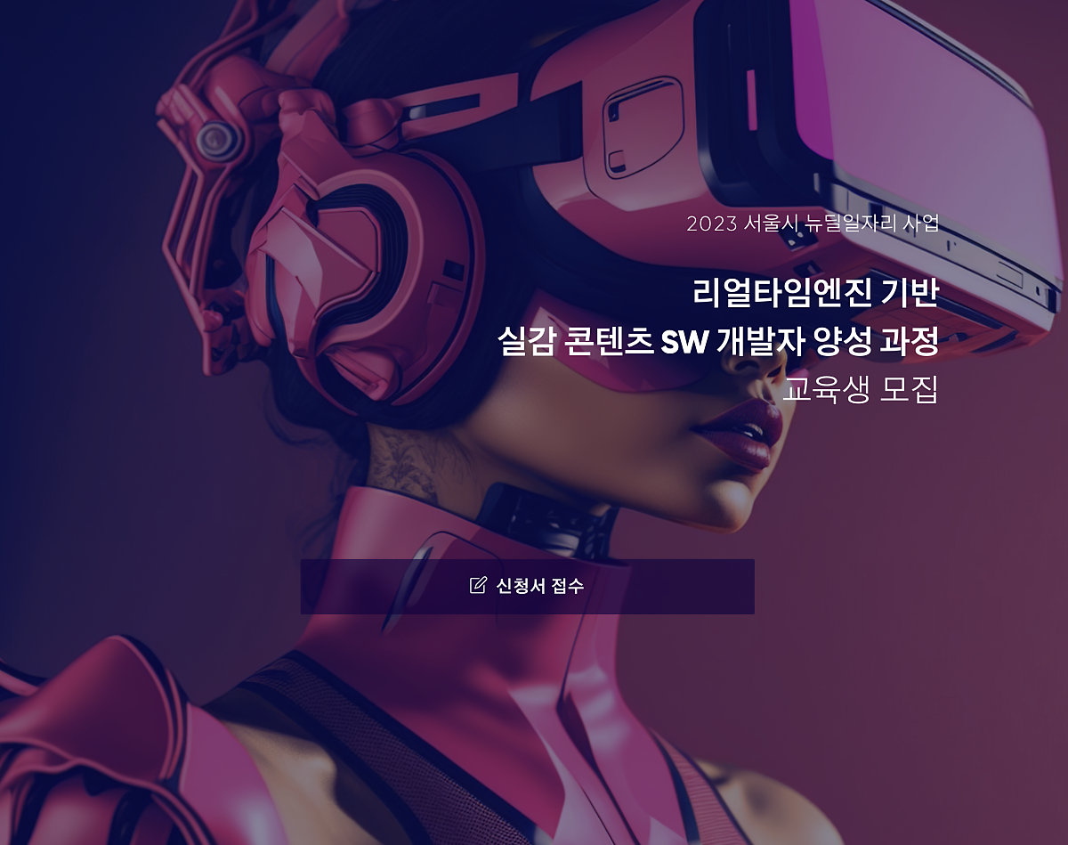 2023년 뉴딜일자리사업에서 리얼타임엔진기반 실감 콘텐츠 SW 개발자 양성과정 교육생 모집을 하고 있습니다. 뉴딜일자리 사업은 서울시 사업으로 취업에 어려움을 겪는 청년들을 위해 양질의 직무교육을 제공해 취업을 할 수 있도록 도와주는 무료 취업 프로그램입니다. 실제 취업이 이루어지고 기업에도 도움이 될 수 있도록 최고의 교육 프로그램을 제공하고 있고 매일 식대 및 교통비로 일 25,000원이 지원되는 감동의 뉴딜일자리사업이니 잘 참고해서 도전해 보시면 좋을 것 같습니다.