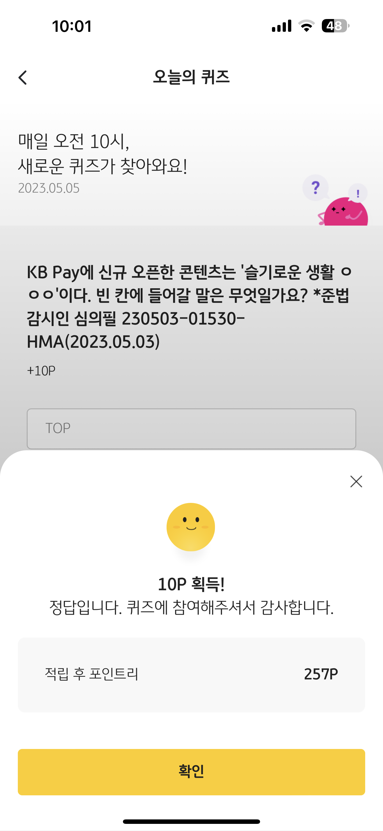 KB Pay 오늘의 퀴즈 5월 5일 문제입니다