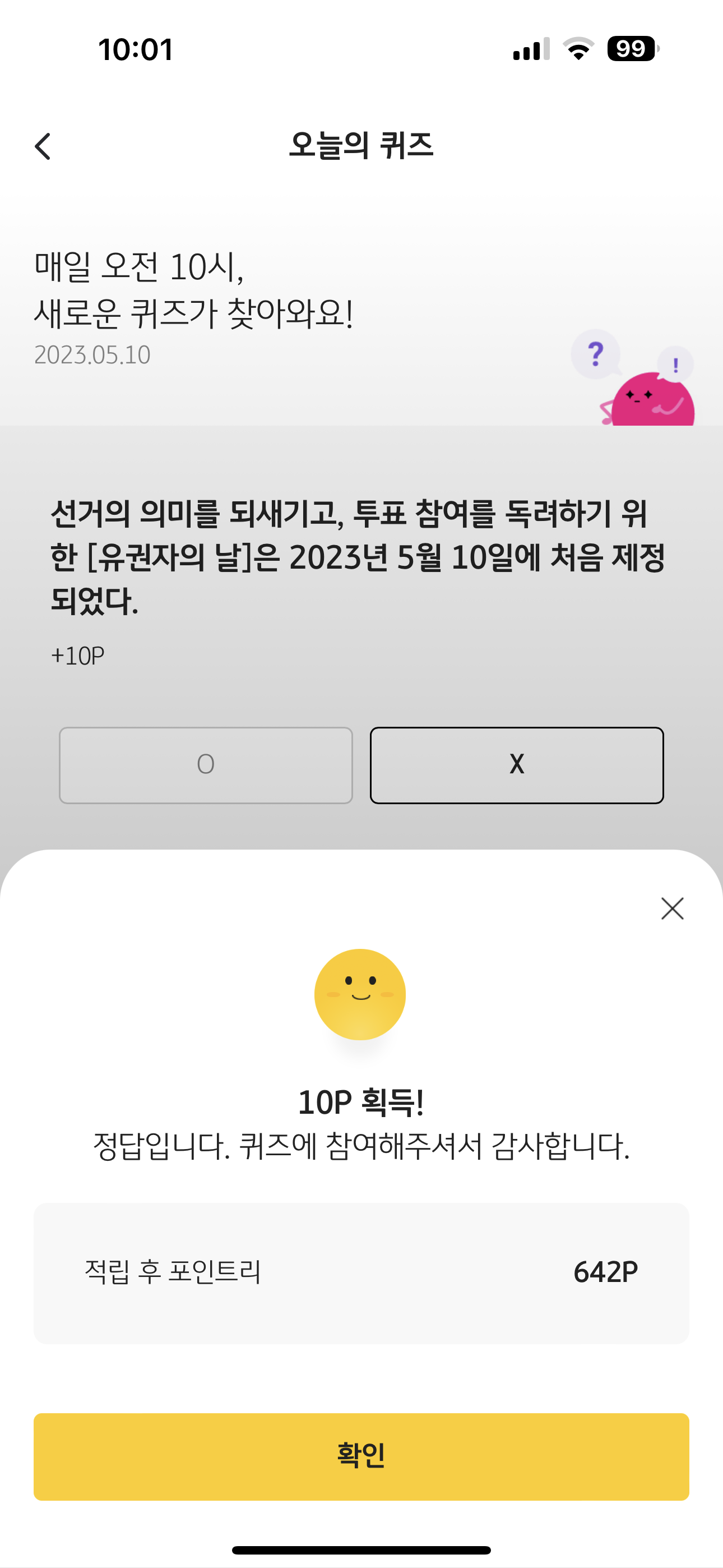 KB Pay 오늘의 퀴즈 정답은 X 입니다