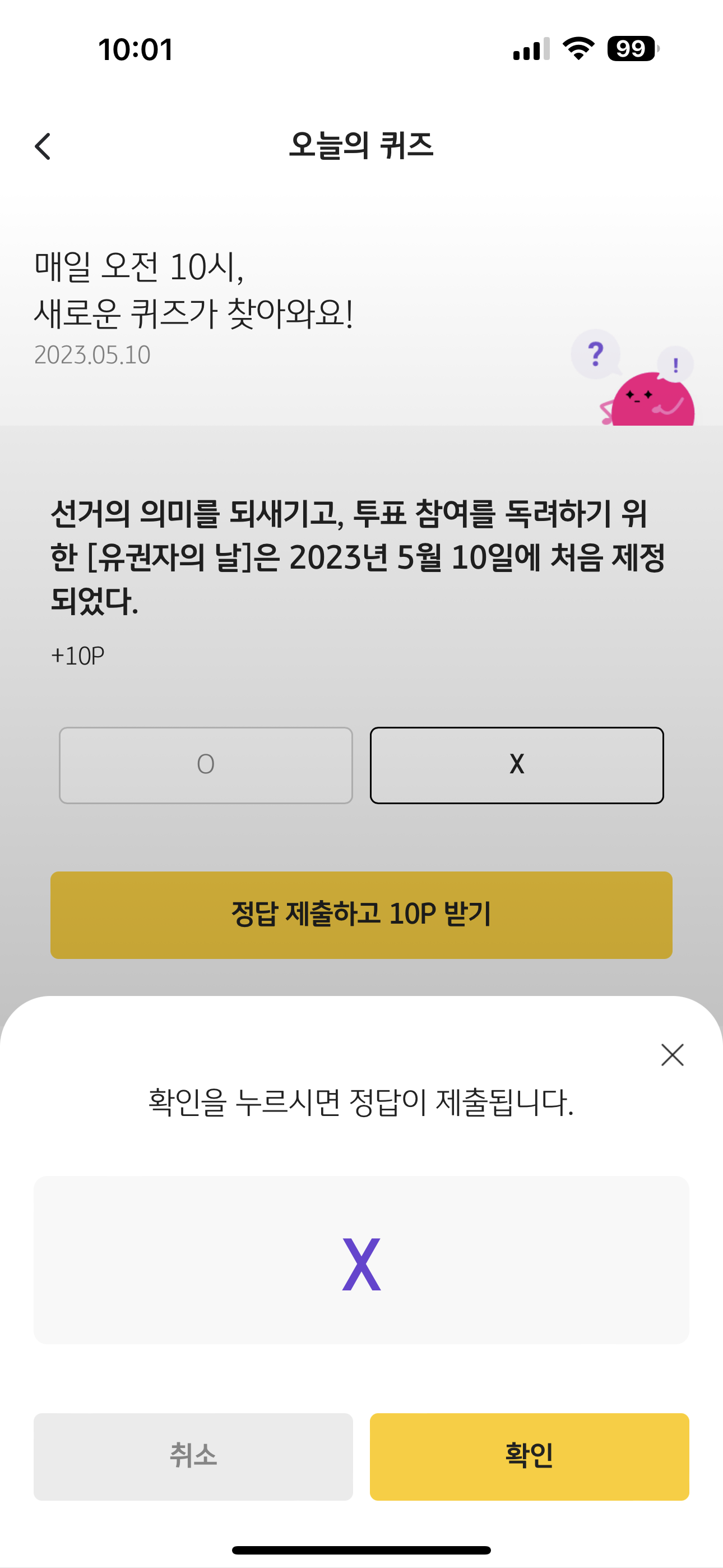 KB Pay 오늘의 퀴즈 정답은 X 입니다