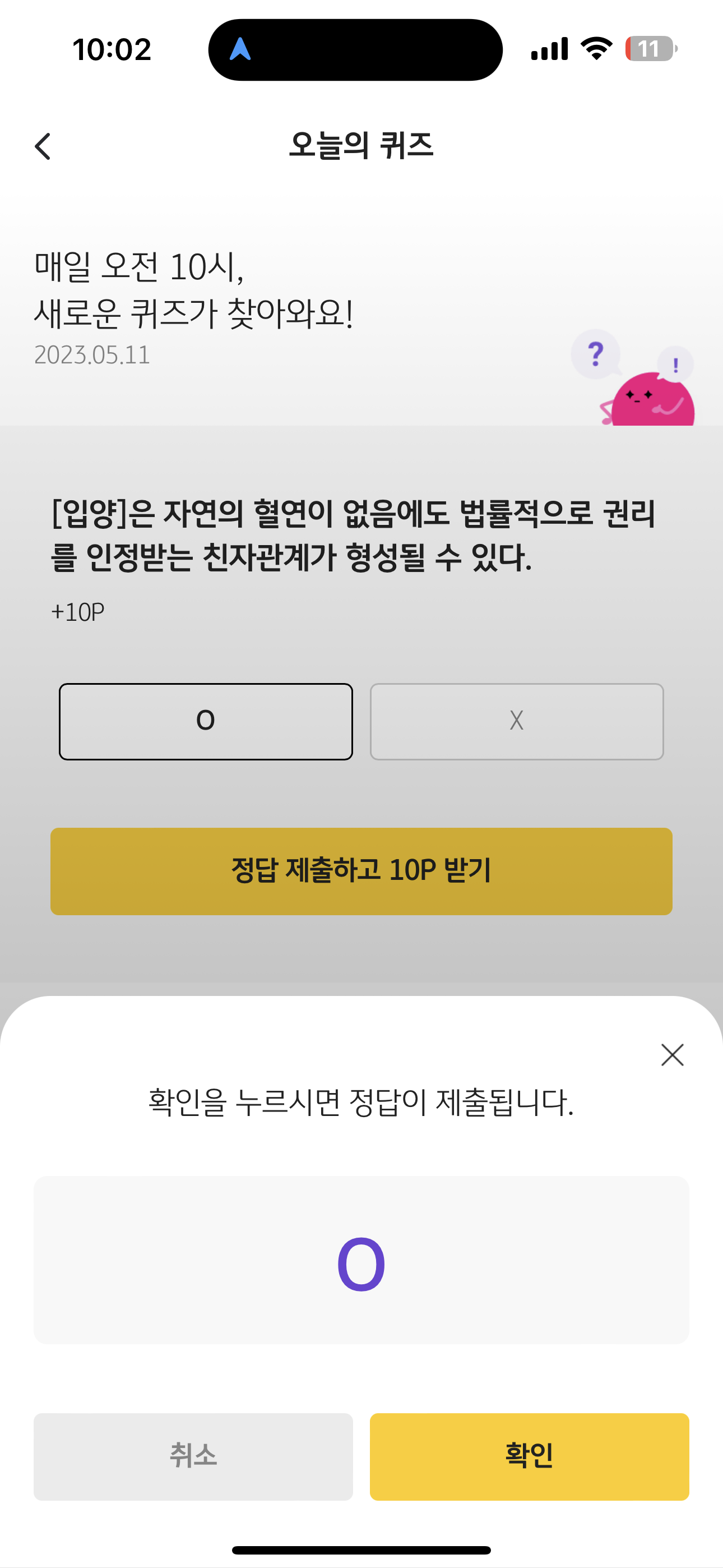 KB Pay 오늘의 퀴즈 정답은 O 입니다
