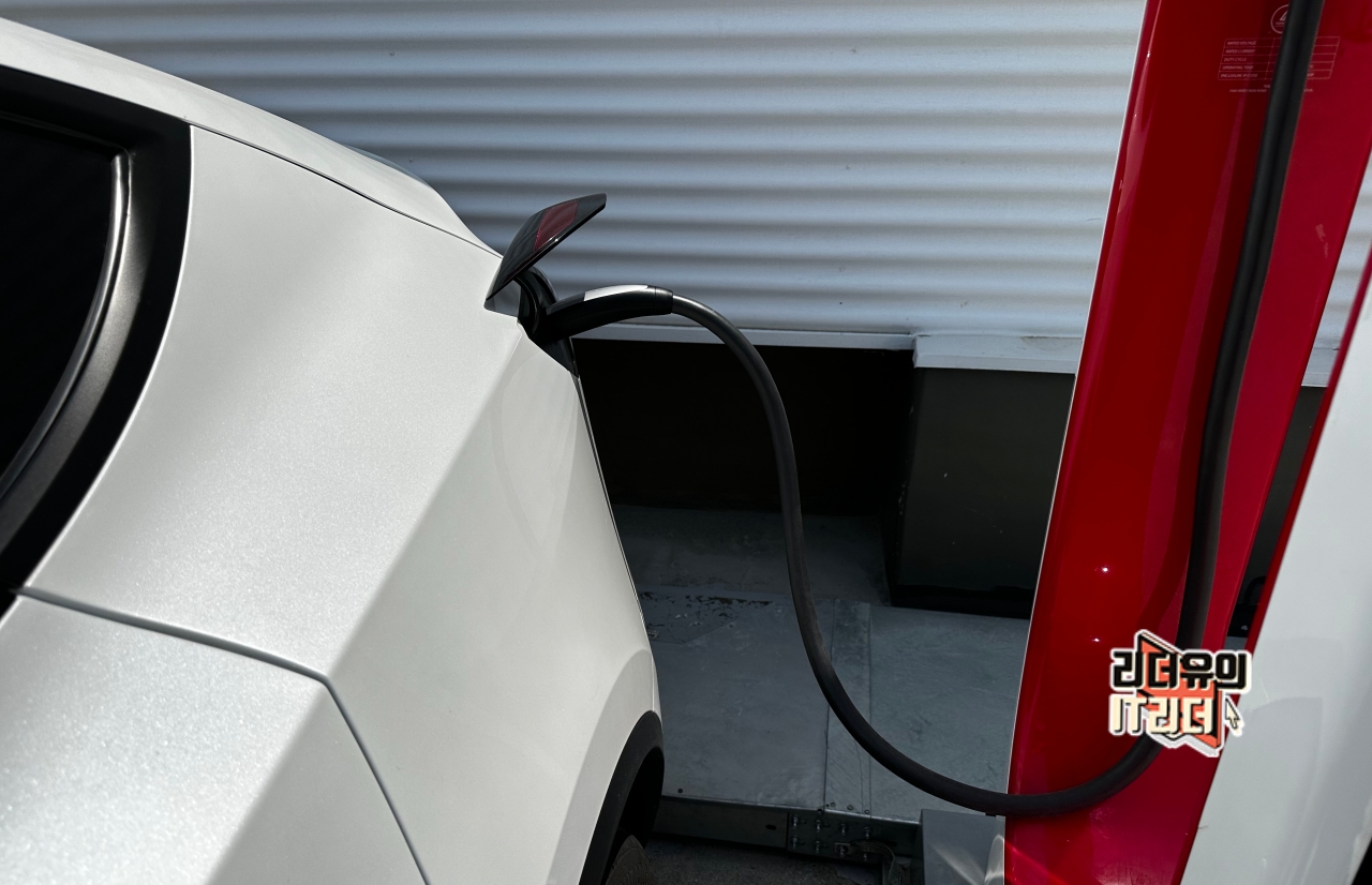 테슬라 모델Y 수퍼차저 (슈퍼차저) 전기차 충전 방법은 간단합니다. 그냥 슈퍼차저 주차 공간에 세우고