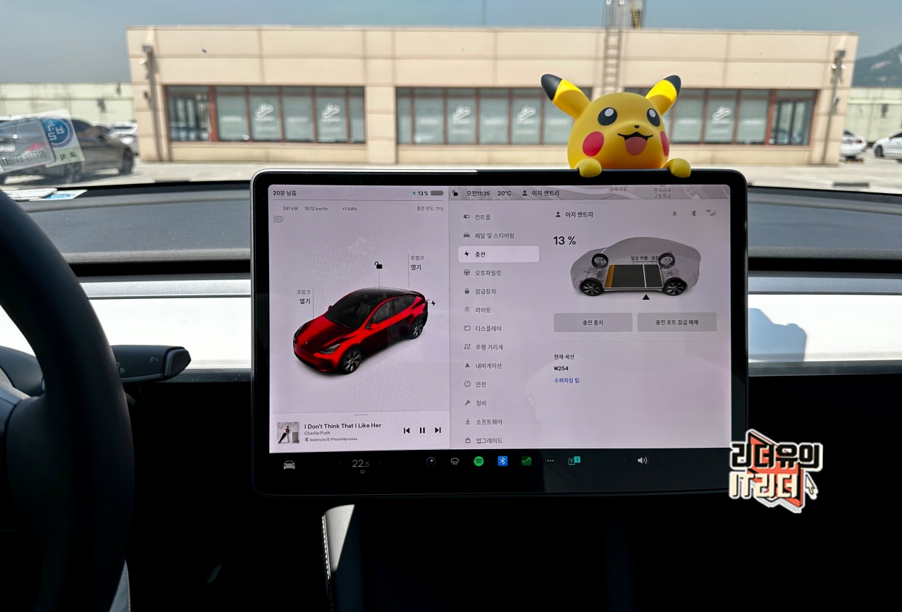 케이블을 뽑아 바로 테슬라 모델Y에 연결만 하면 됩니다.