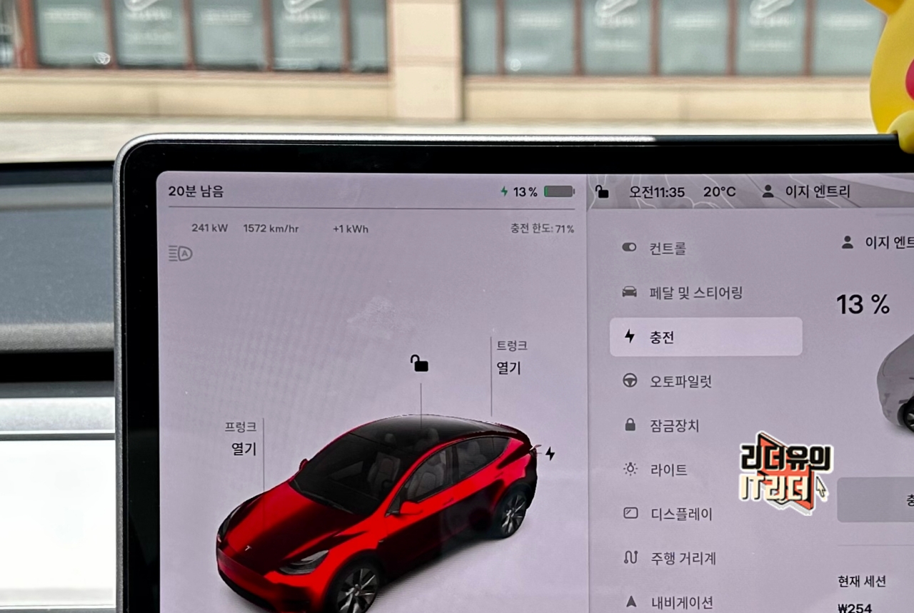 저 같은 경우는 테슬라 모델Y 배터리가 13%였을때 71%까지만 채운다고 설정했을때 완충시까지 시간은 20분이 걸린다고 나옵니다. 엄청 빠르죠. 테슬라 모델Y 전기차 배터리 용량도 큰데 단시간에 충전이 가능한 걸 확인할 수 있습니다.