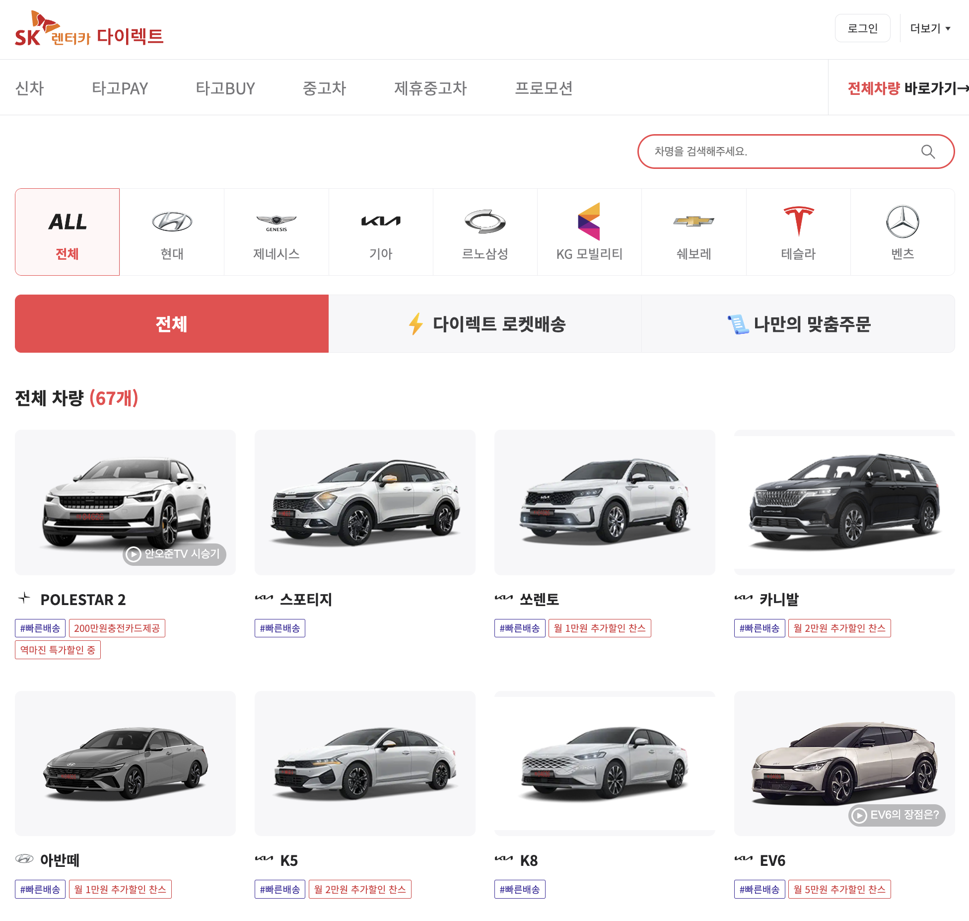 SK렌터카 다이렉트 신차 장기렌터카 인기