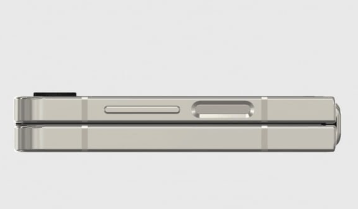 갤럭시Z 플립5 렌더링 디자인 옆면 모습입니다. 엣지있는 라인이 간결하고 고급스러움을 느끼게 해줍니다.