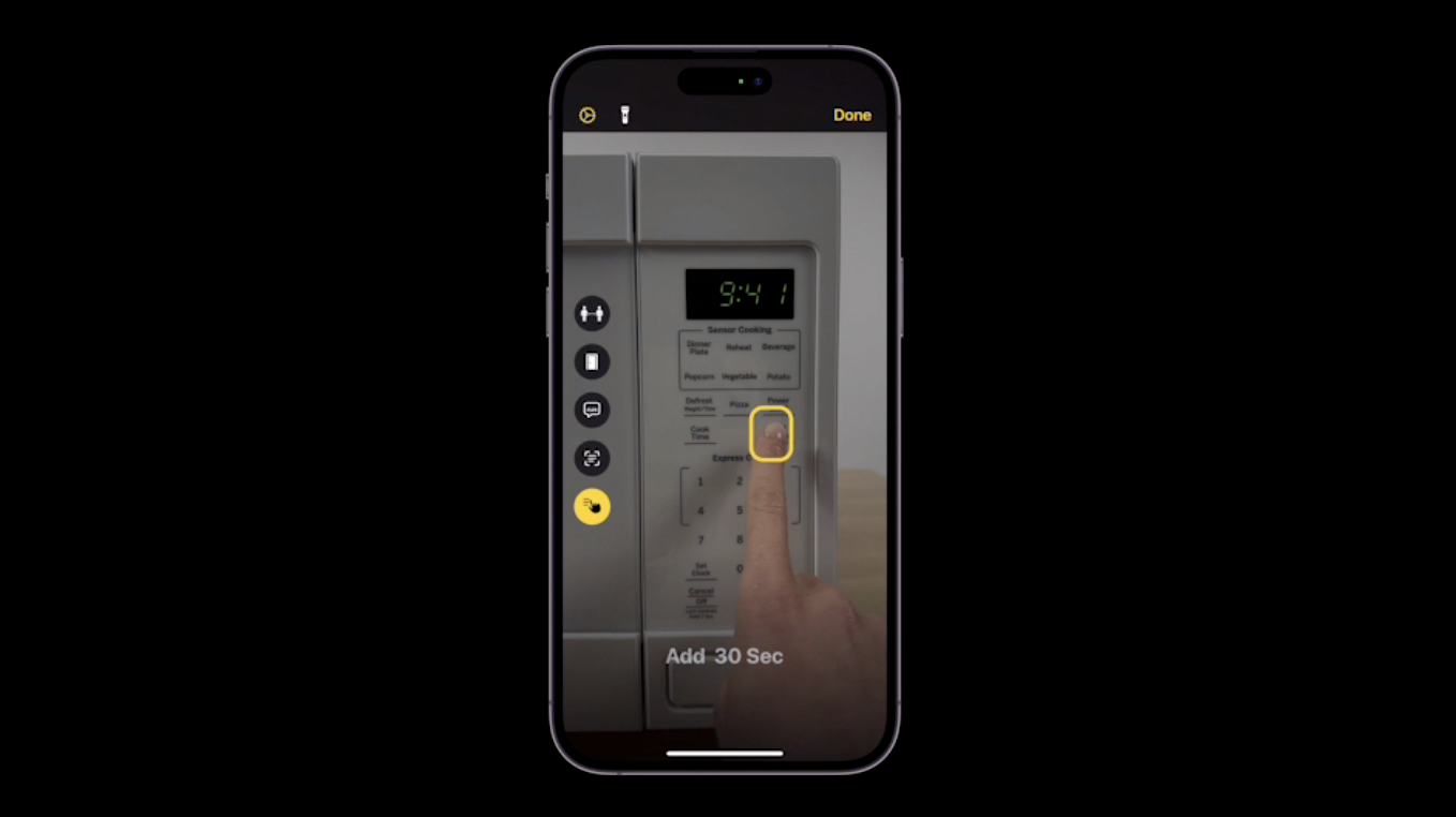 시각 장애가 있거나 시력이 저하된 사용자들을 위해 애플은 이번에 확대기에 Point and Speak 기능을 넣었습니다. 아이폰, 아이패드의 확대기 앱을 이용해 사물을 비추면 여러 텍스트 레이블을 선택했을때 읽어줘 쉽게 파악할 수 있게 했습니다. 이 기능은 카메라 앱, LiDAR 스캐너, 온디바이스 머신러닝을 사용해 사용자가 키패드 위로 손가락을 움직임에 따라 각 버튼 위의 텍스트를 읽어줍니다.