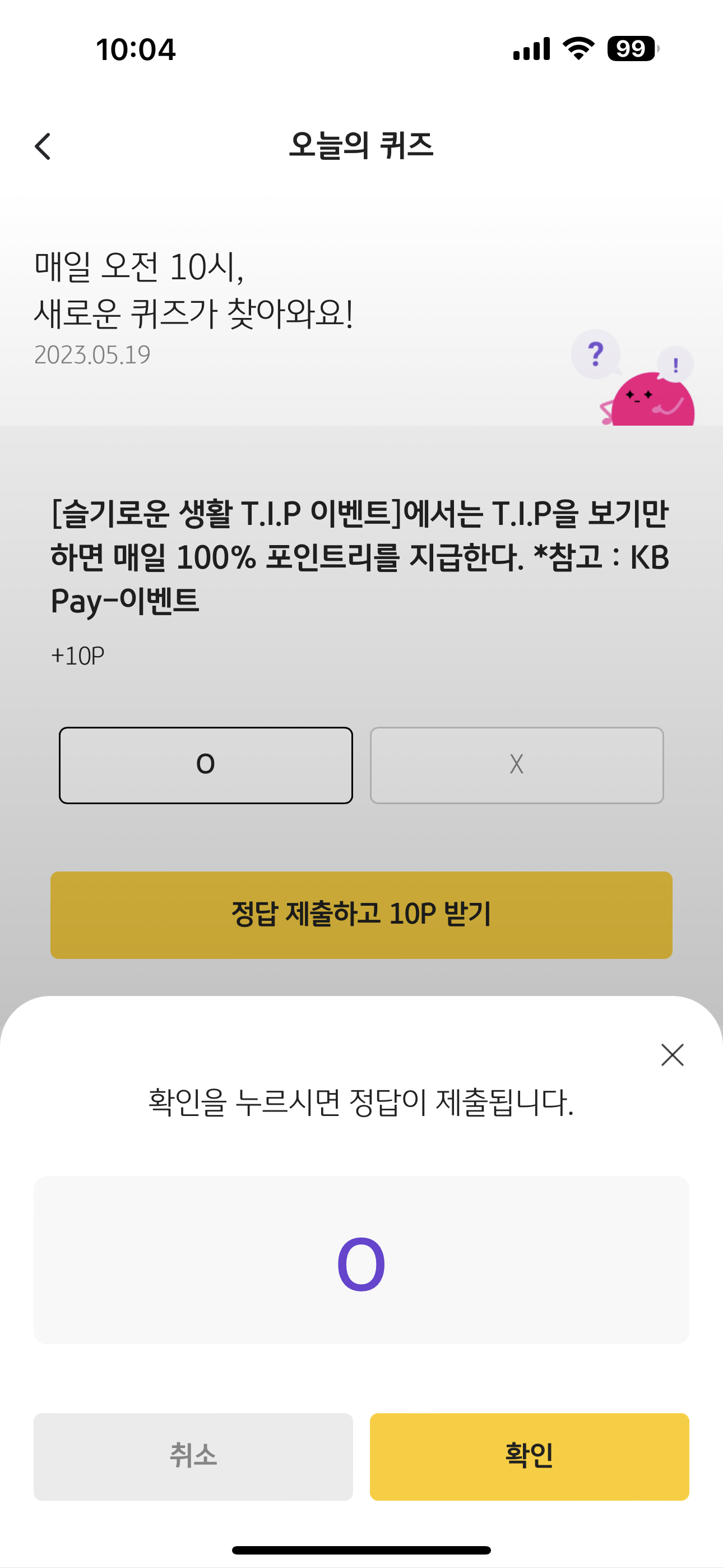 KB Pay 오늘의 퀴즈 정답은 O 입니다