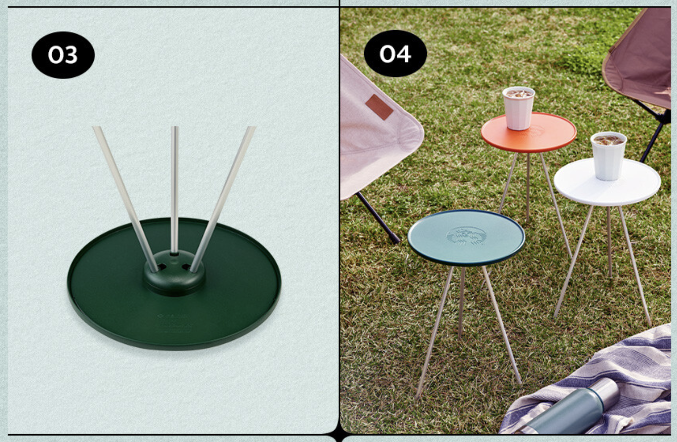 2023 여름 스타벅스 프리퀀시 스타벅스 사이드 테이블은 원형의 감각적인 사이드 테이블입니다. 기본적으로 캠핑 사이드 테이블이지만 집에서도 사용할 수 있는 매력적인 아이템이 될 것 같습니다. 그리고 색상도 너무 예쁜데요. 모던한 색상의 아이보리, 스타벅스를 상징하는 그린, 톡톡 튀는 개성을 보여주는 브릭 오렌지 색상이 있습니다.