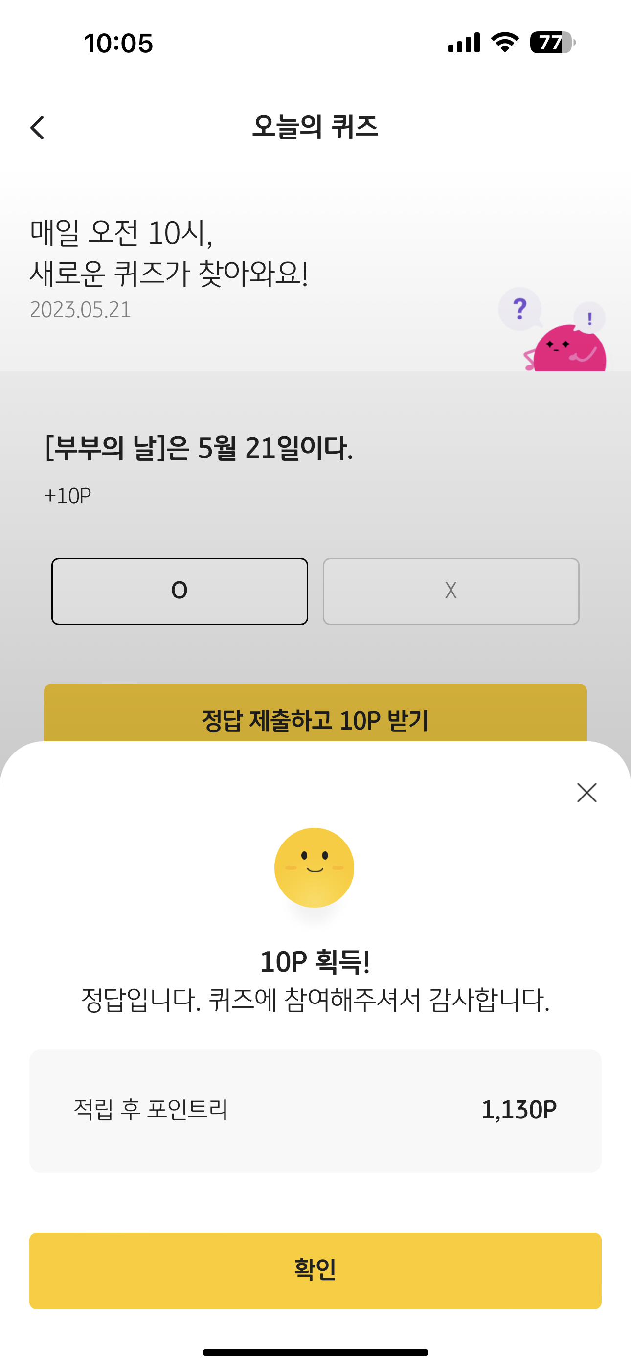 KB Pay 오늘의 퀴즈 정답은 O 입니다