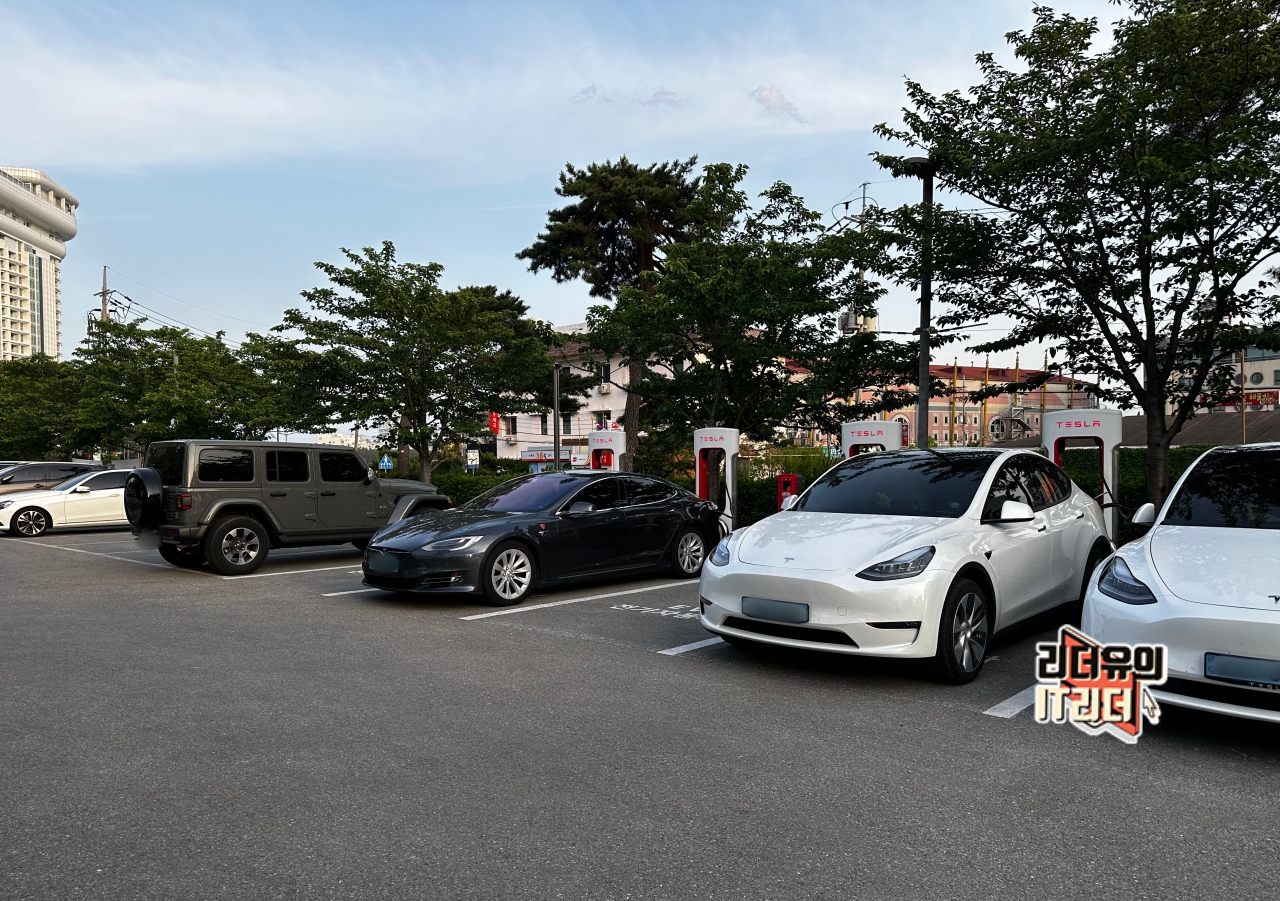 아직은 휴가철이 아니니까 강릉 테슬라 수퍼차저(슈퍼차저)가 혼잡하거나 기다리지 않아도 되서 좋습니다.