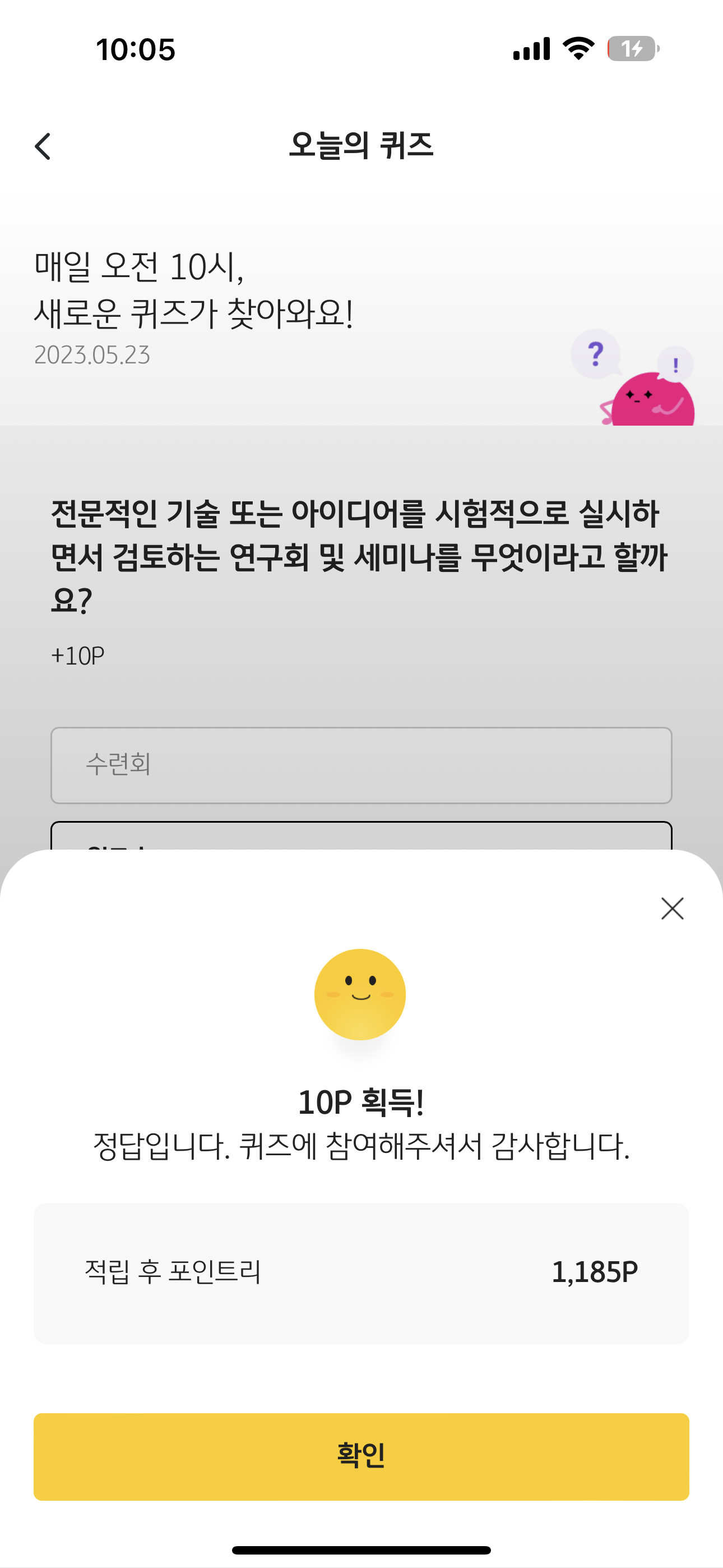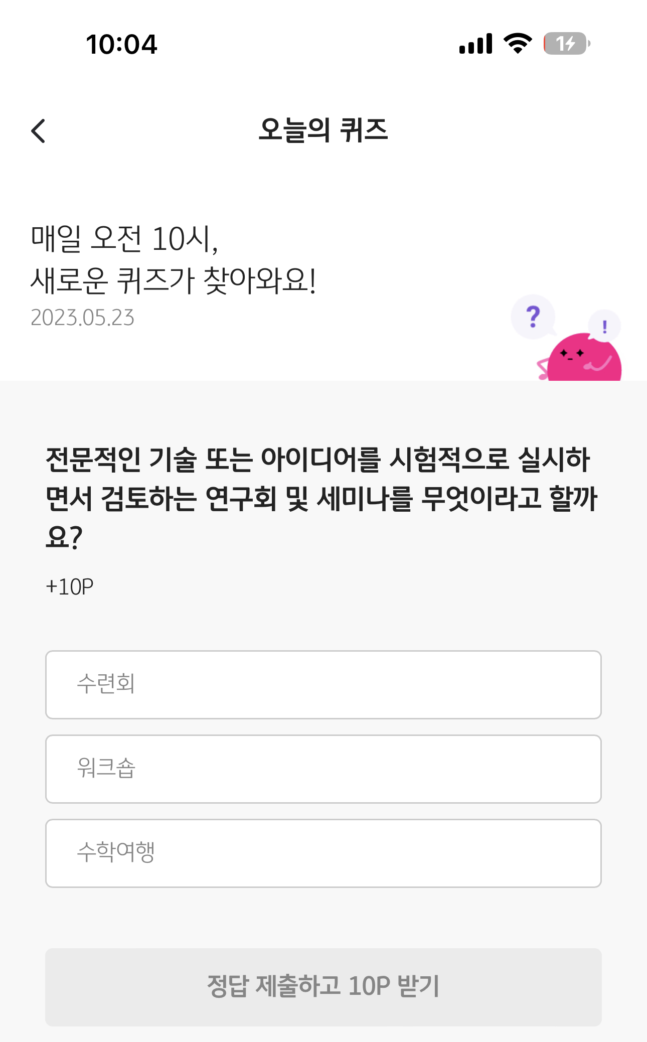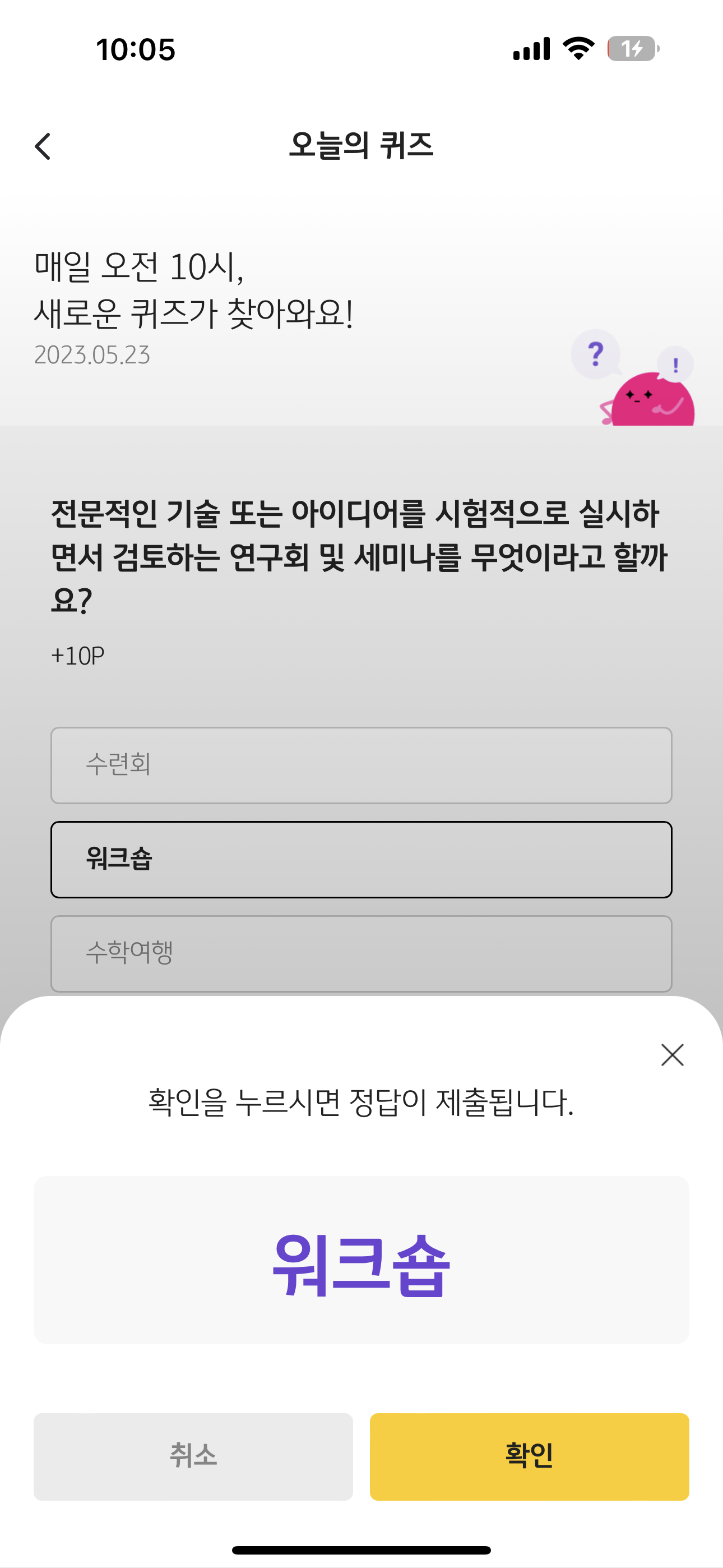 KB Pay 오늘의 퀴즈 정답은 워크숍 입니다