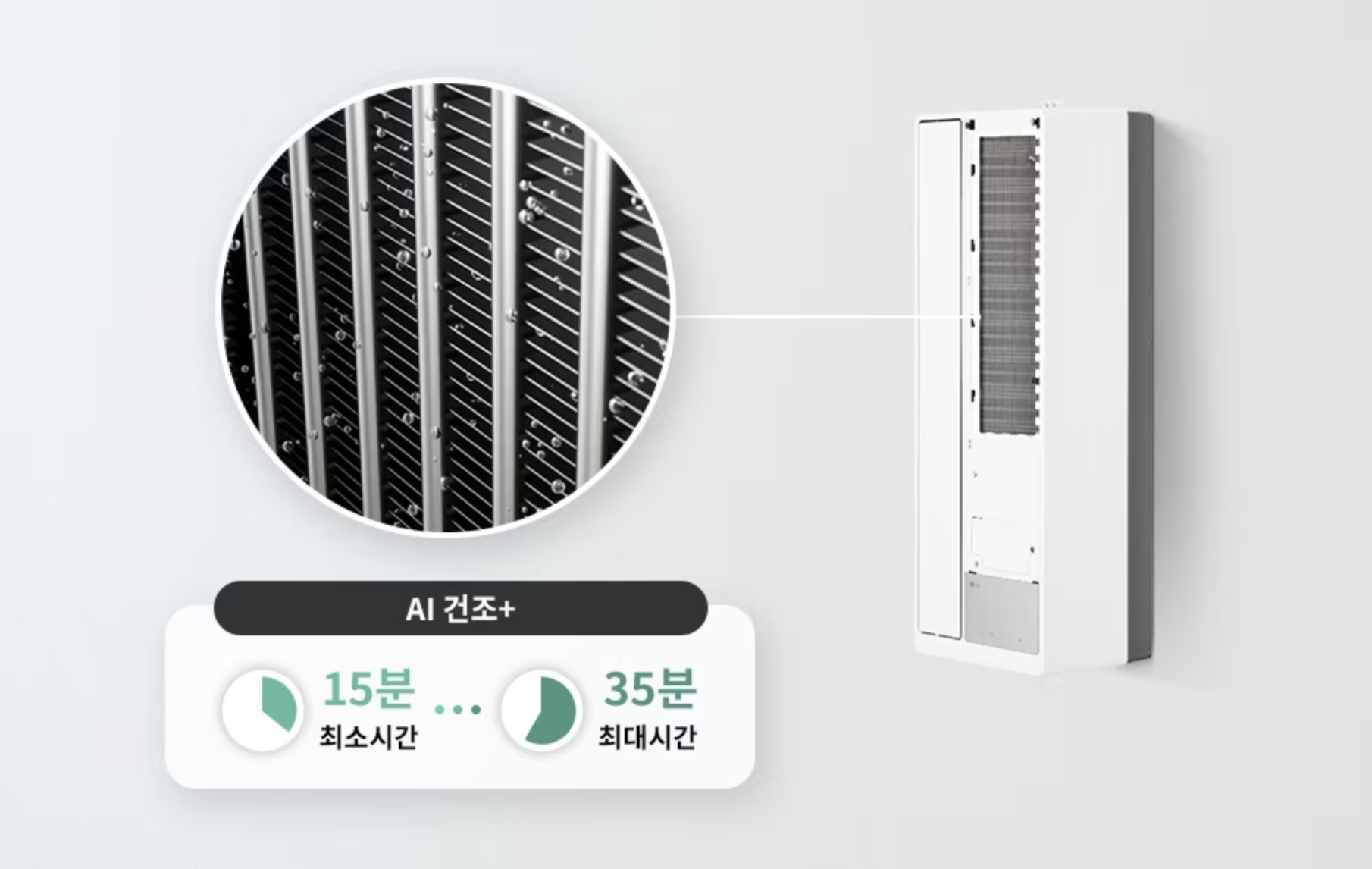 기존 LG 창문형 에어컨은 사용을 종료하면 자동으로 건조 기능이 진행되었고 20분~35분 가량이 소요되었습니다. 꽤 긴 시간이 걸렸는데요. 2023년 LG 창문형 에어컨 휘센 오브제컬렉션 엣지는 건조 시간을 최단 15분까지 줄일 수 있게 개선이 되었습니다. 그리고 건조 풍량을 3단계로 확대해 고객 취향에 맞게 건조 기능을 사용할 수 있습니다.