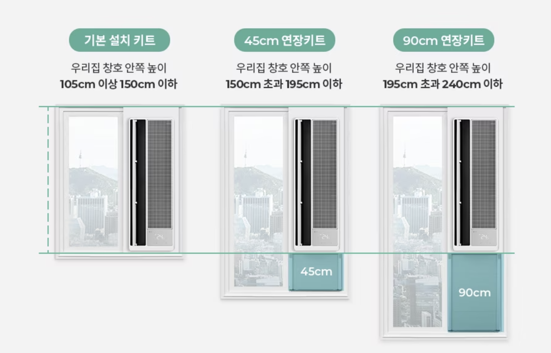 LG 창문형 에어컨은 창과 완벽하게 매립되는 디자인으로 호평을 받았지만 설치의 제약이 많아서 많은 사람들이 선택하지 못한 창문형 에어컨 이었습니다. 그래서 LG전자는 이를 개선해 2023년 LG 창문형 에어컨은 기존 105cm~150cm 높이에서 240cm의 대형 창문까지 설치가 가능하도록 개선이 되었습니다.