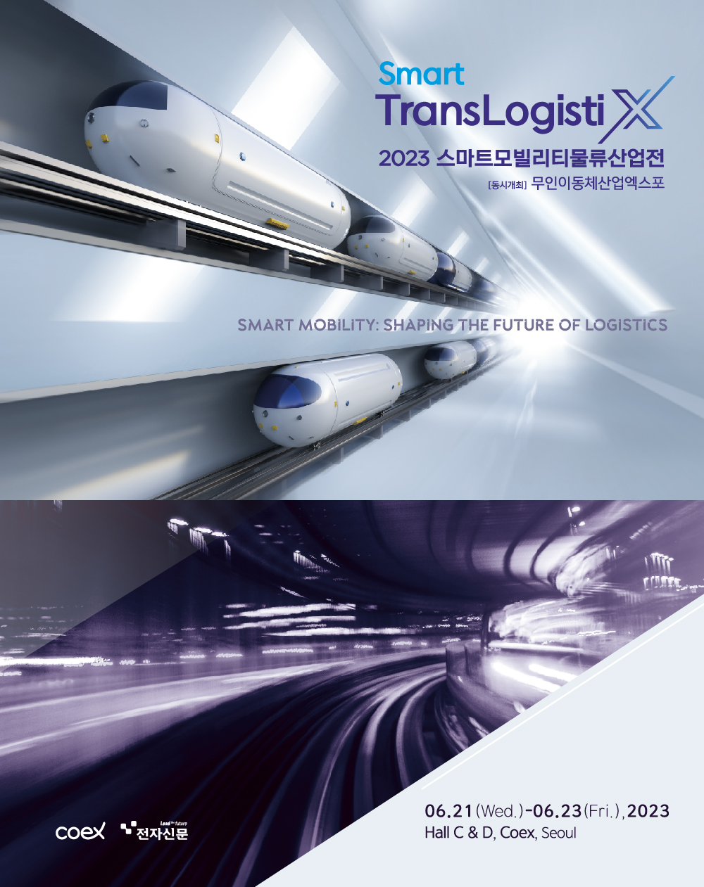 2023 스마트모빌리티물류산업전은 코엑스 C,D홀에서 6월 21일부터 23일까지 3일간 진행됩니다. 사전등록을 하면 무료 관람이 가능하니 미리미리 등록해 두세요!